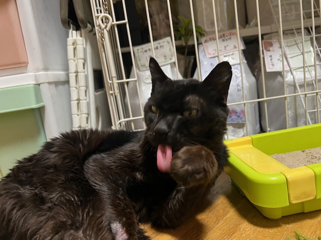 「くろにゃ」の黒い毛がつやつやできれいです(*'ω'*)