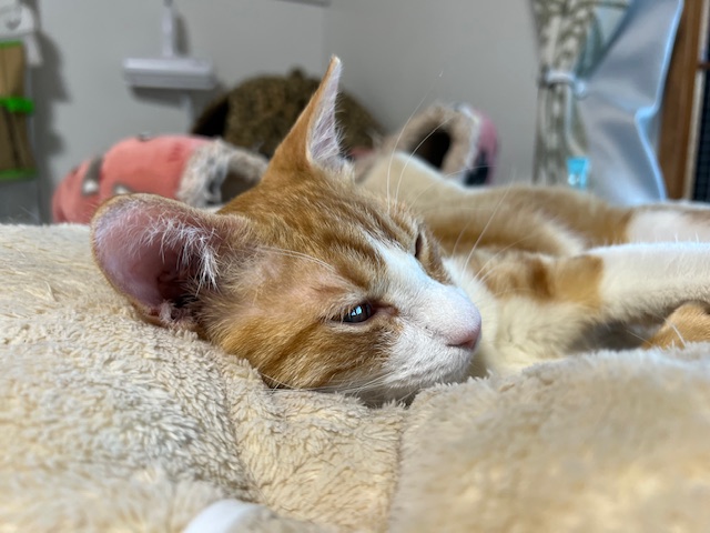 甘ったれなので抱っこしてあげたいけど、真菌が治るまではもうちょっと我慢してね。