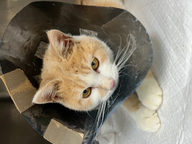 後肢骨折でまだ出血もあるので、しばらくはまだエリカラ生活だね。がんばろう。