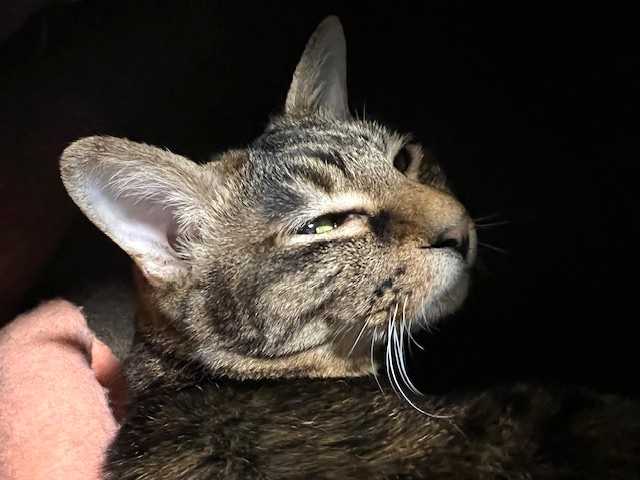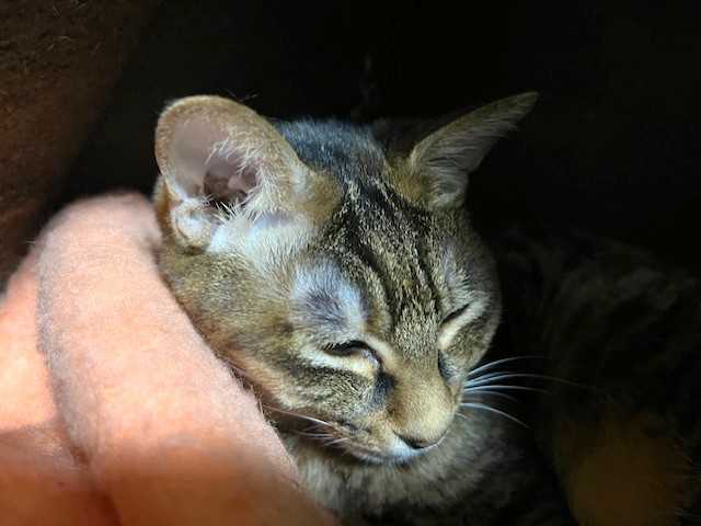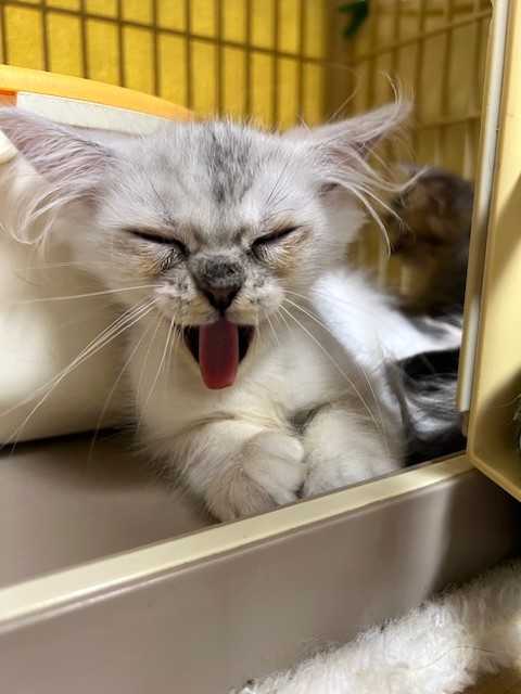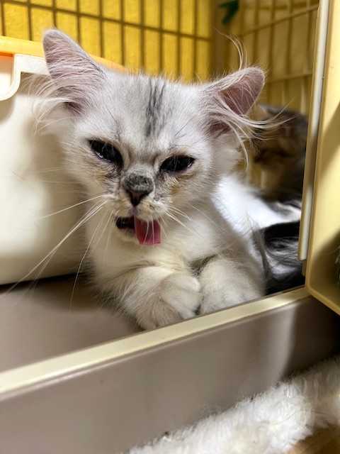 「ストラ」の毛はとても柔らかくてふわふわです。マッサージしているとこっちが気持ちよくてうっとりしてしまうわ(#^.^#) お目目はちょっと涙出ているけど開いてきてました。