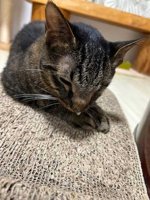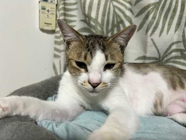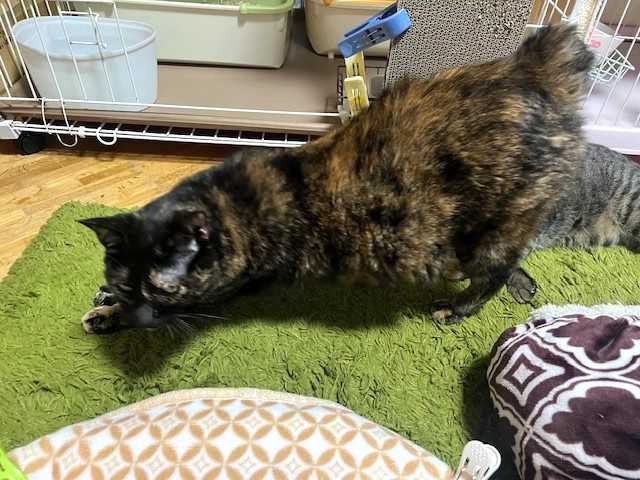 食欲あるのだけど食べる量が少ないようです。大好きなウェットの量を(1日に食べる量)を増やすことにしました♪ しっかり食べて元気付けてね。