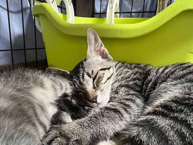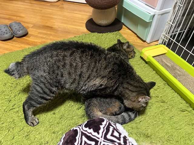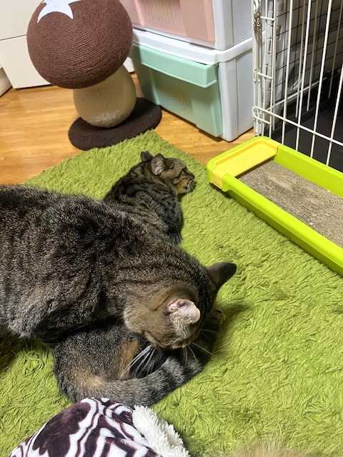 お腹いっぱいウェットを食べて、のんびり過ごしています。ハグも忘れずに♪