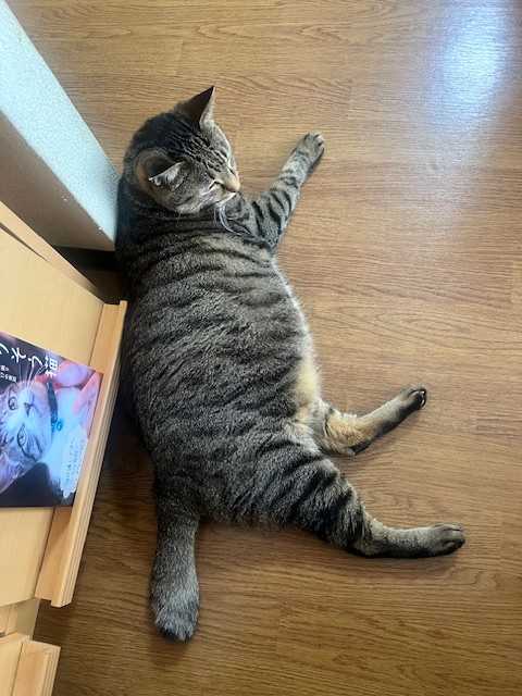 キキはごはん食べに降りてきて、食べたらまた押し入れに入っていきました。
