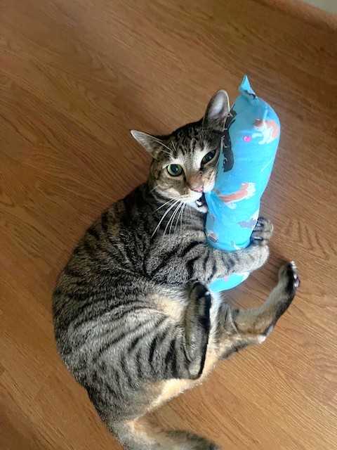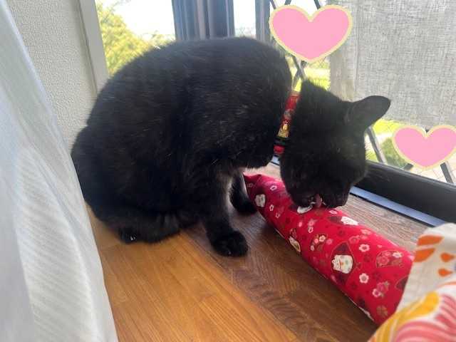 またたびの匂いがついているのでべろべろ舐めていました(;'∀')