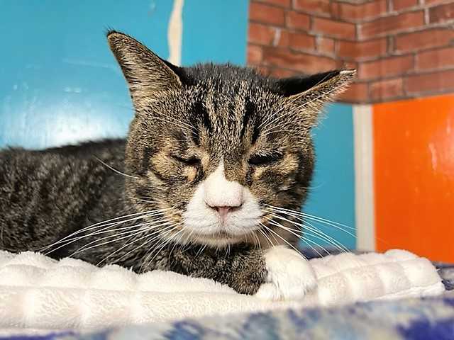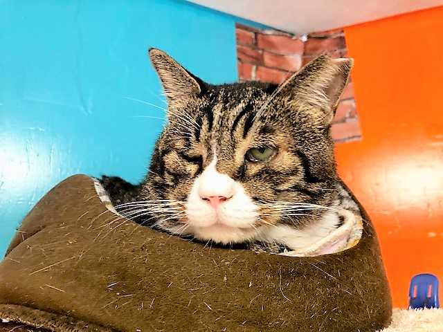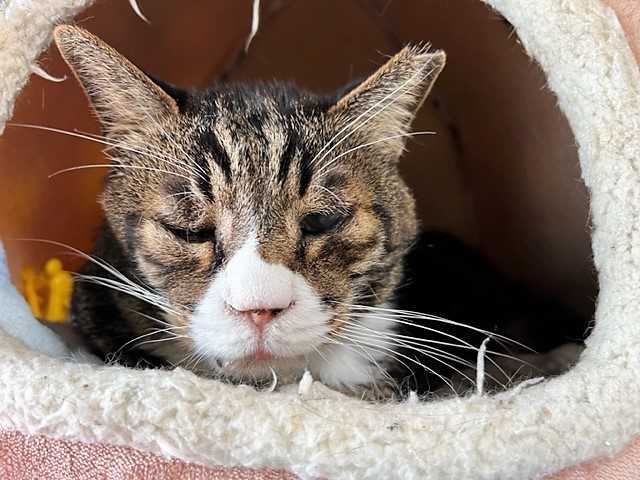 「よねちゃん」はシェルターでの生活が落ち着いてからも、他の猫さん達とはつるまずにいつもひとりで過ごすことが多かったですね。