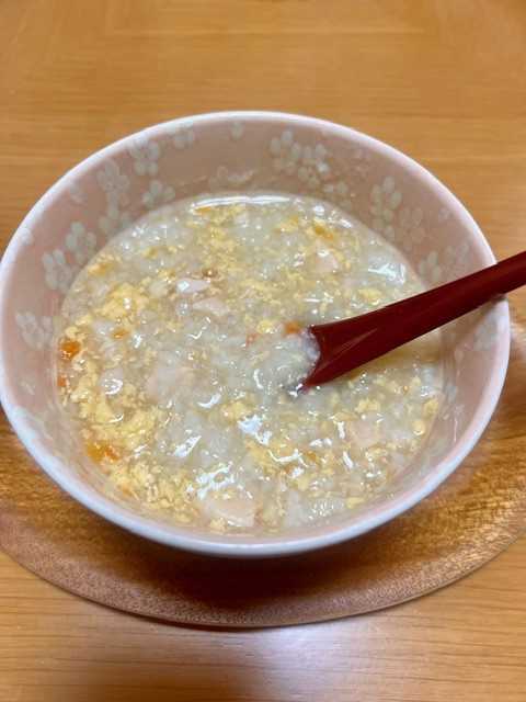 煮込みソースがたっぷりあったので、おかゆにかけて食べました。