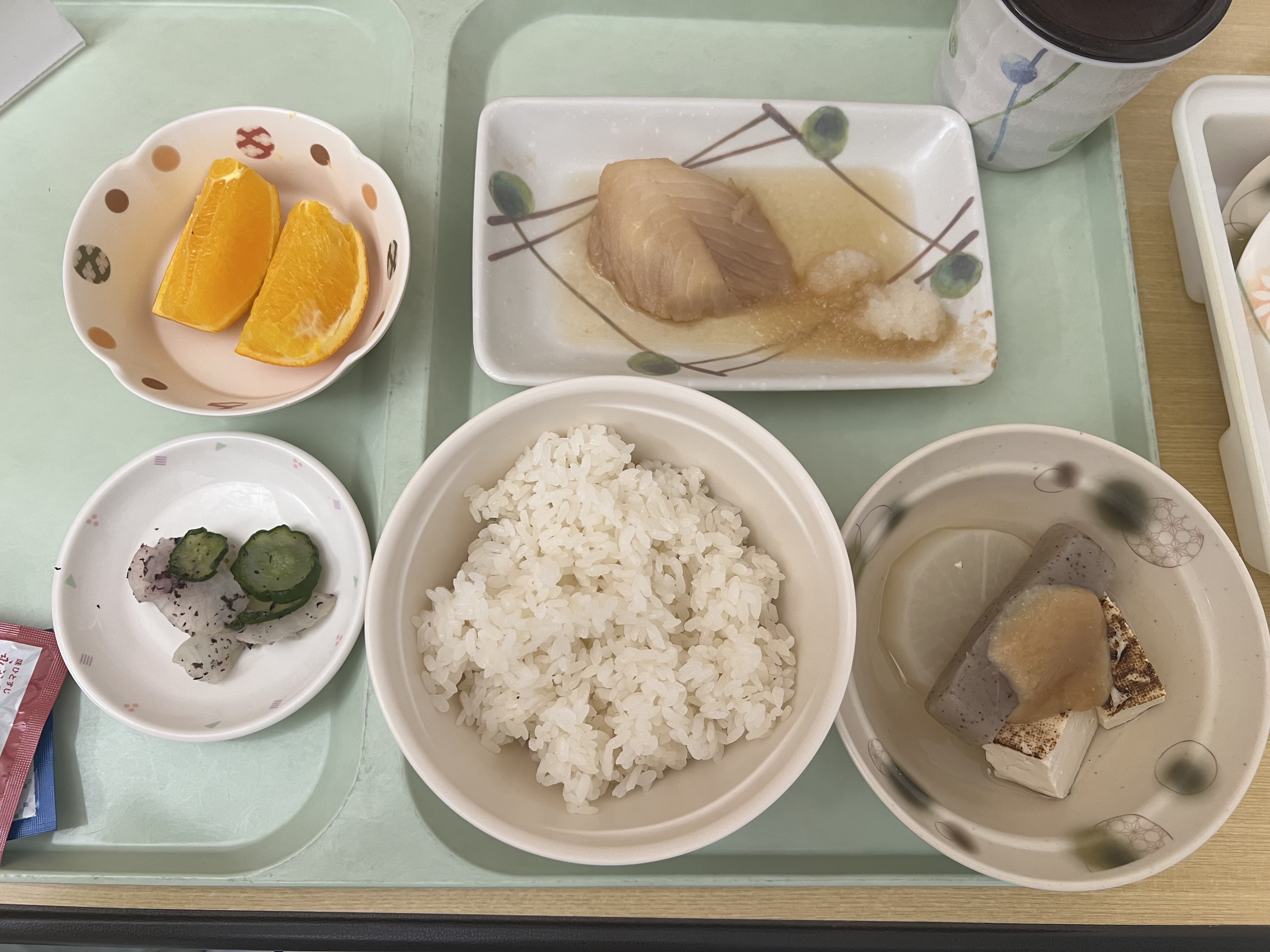 食べられるものが来るかなあと蓋を開けたら、煮魚とおでん。