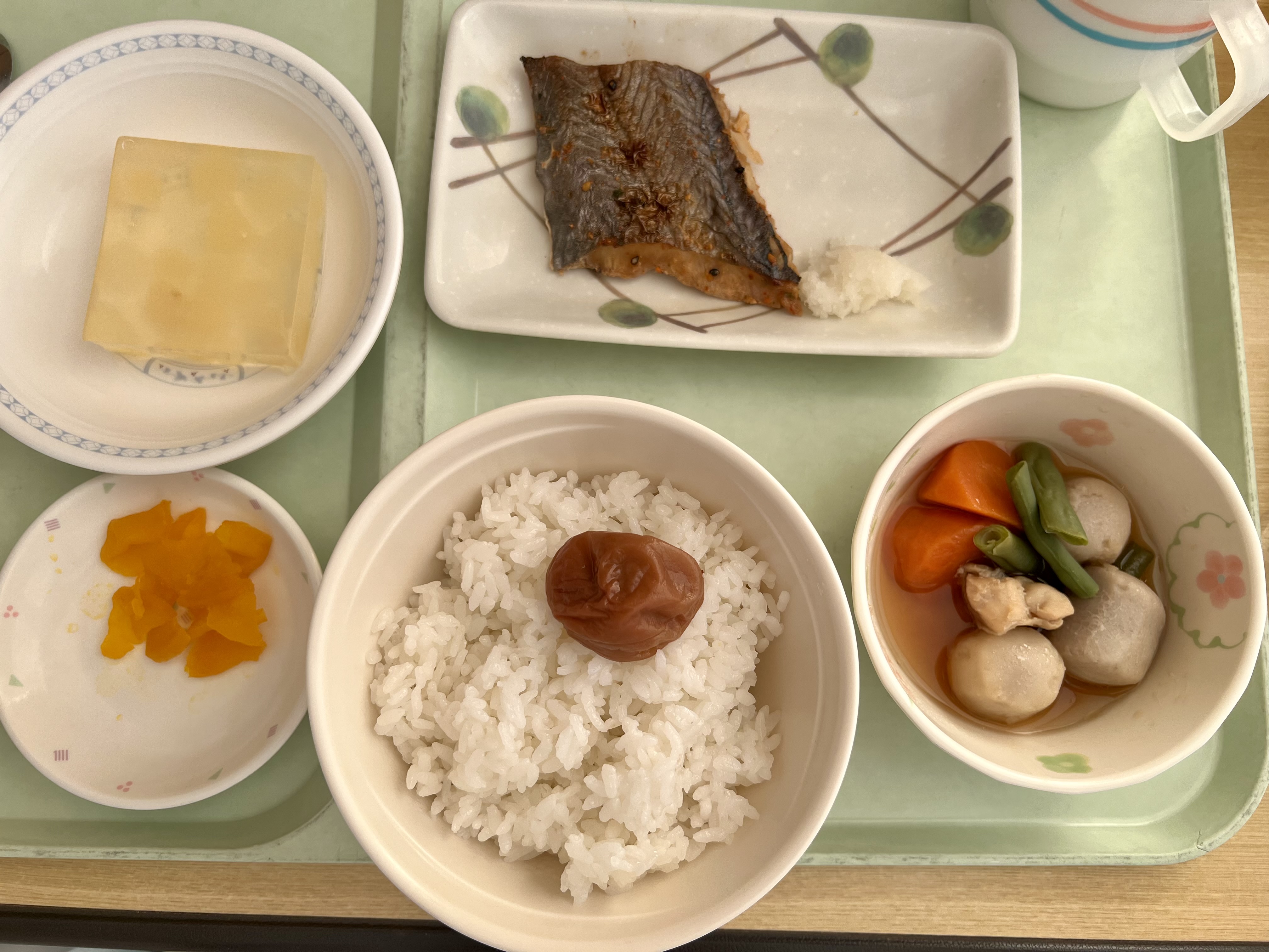 ごはんは量が多いので残していいよと言われてるけど、梅干しが美味しくて食べちゃうのよね。