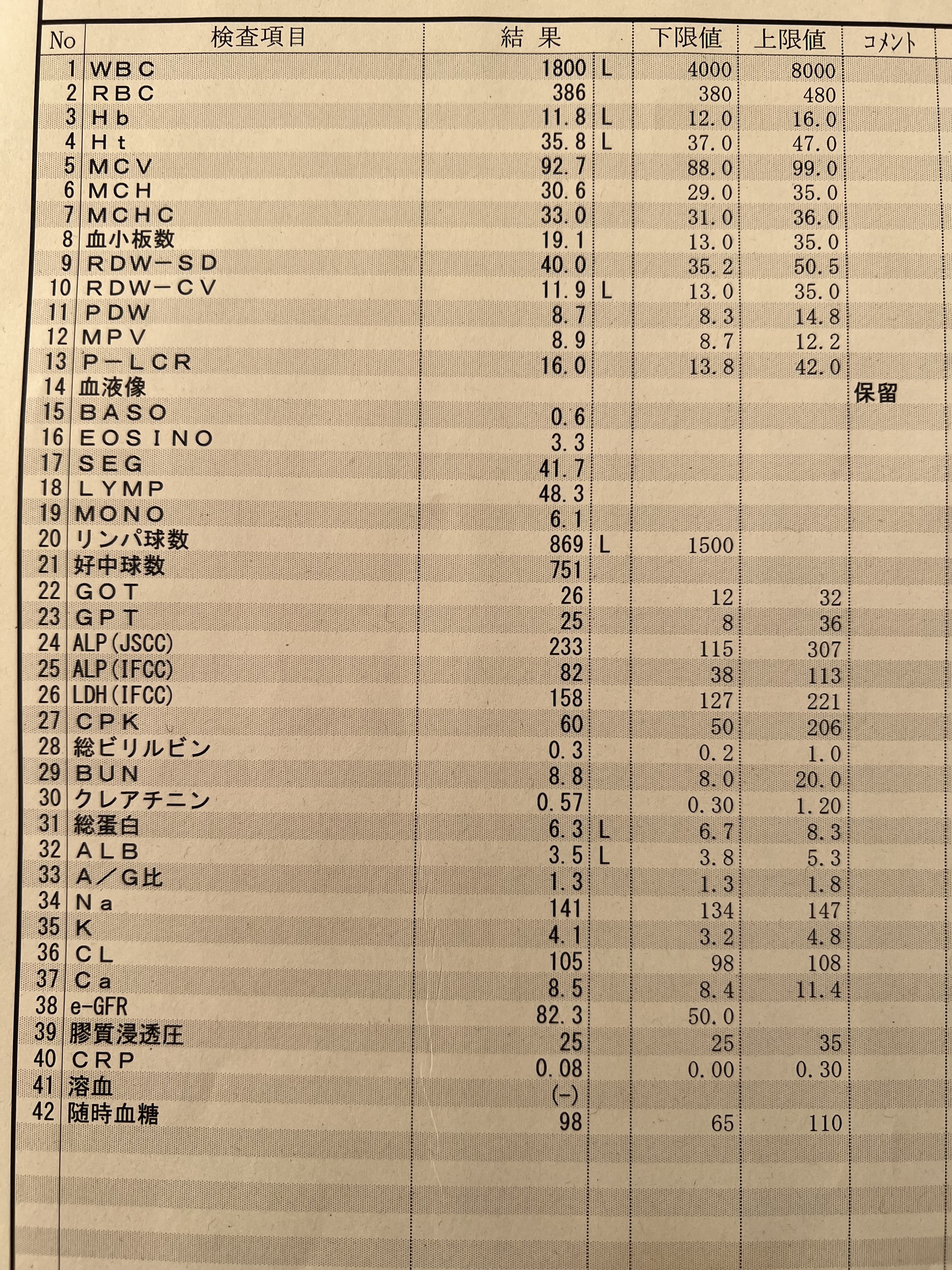 戻ってきたら、先生の秘書の方が採血の結果を持ってきてくれました。