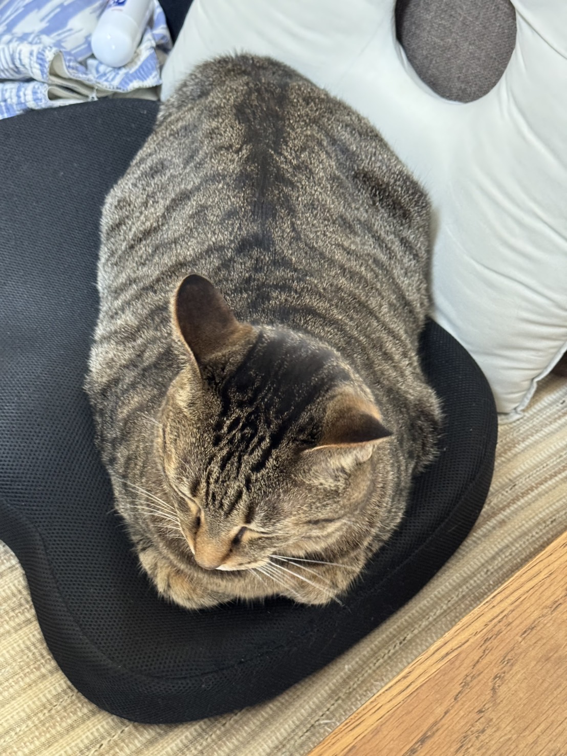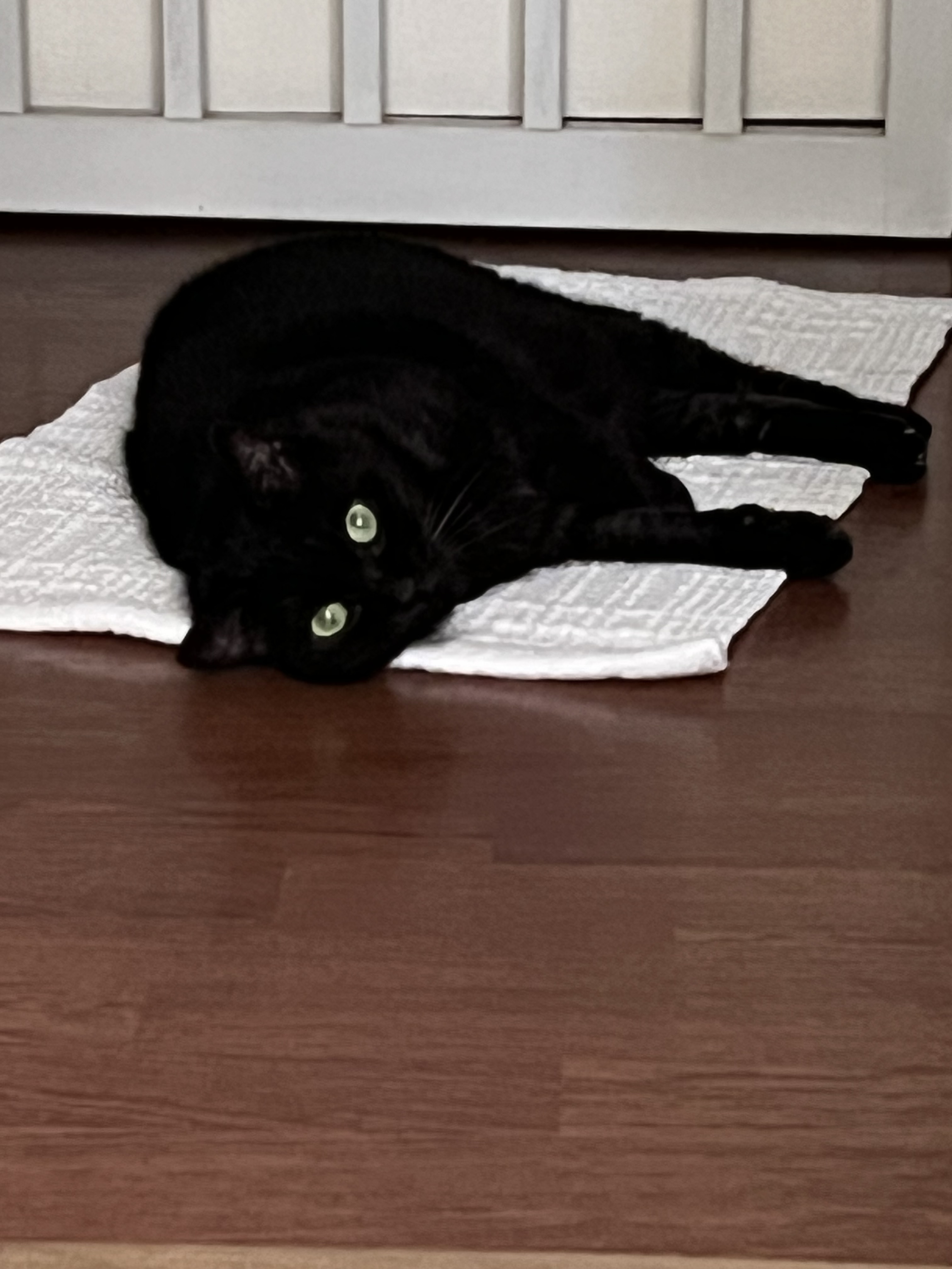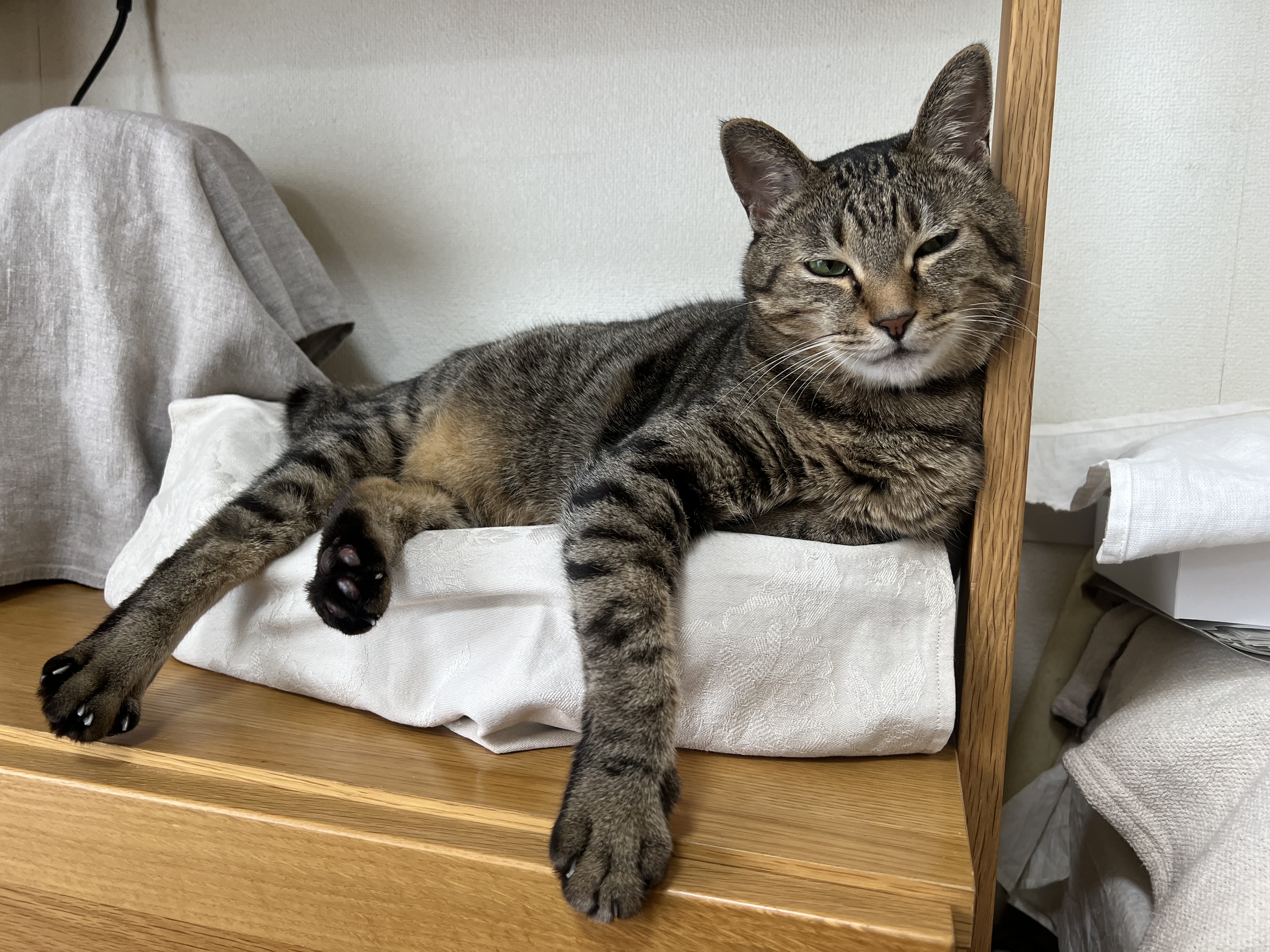 とまとは私がダイニングテーブルで何かやってたので、ここに来て寝ていました。