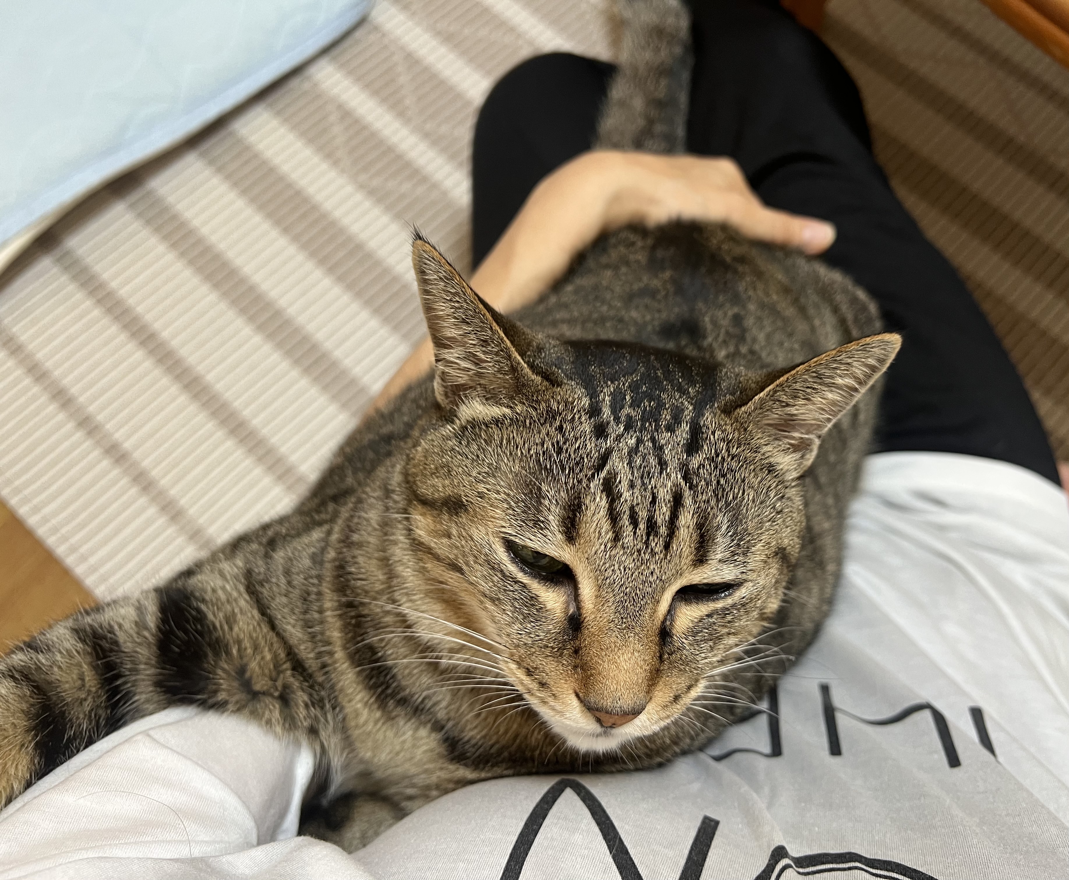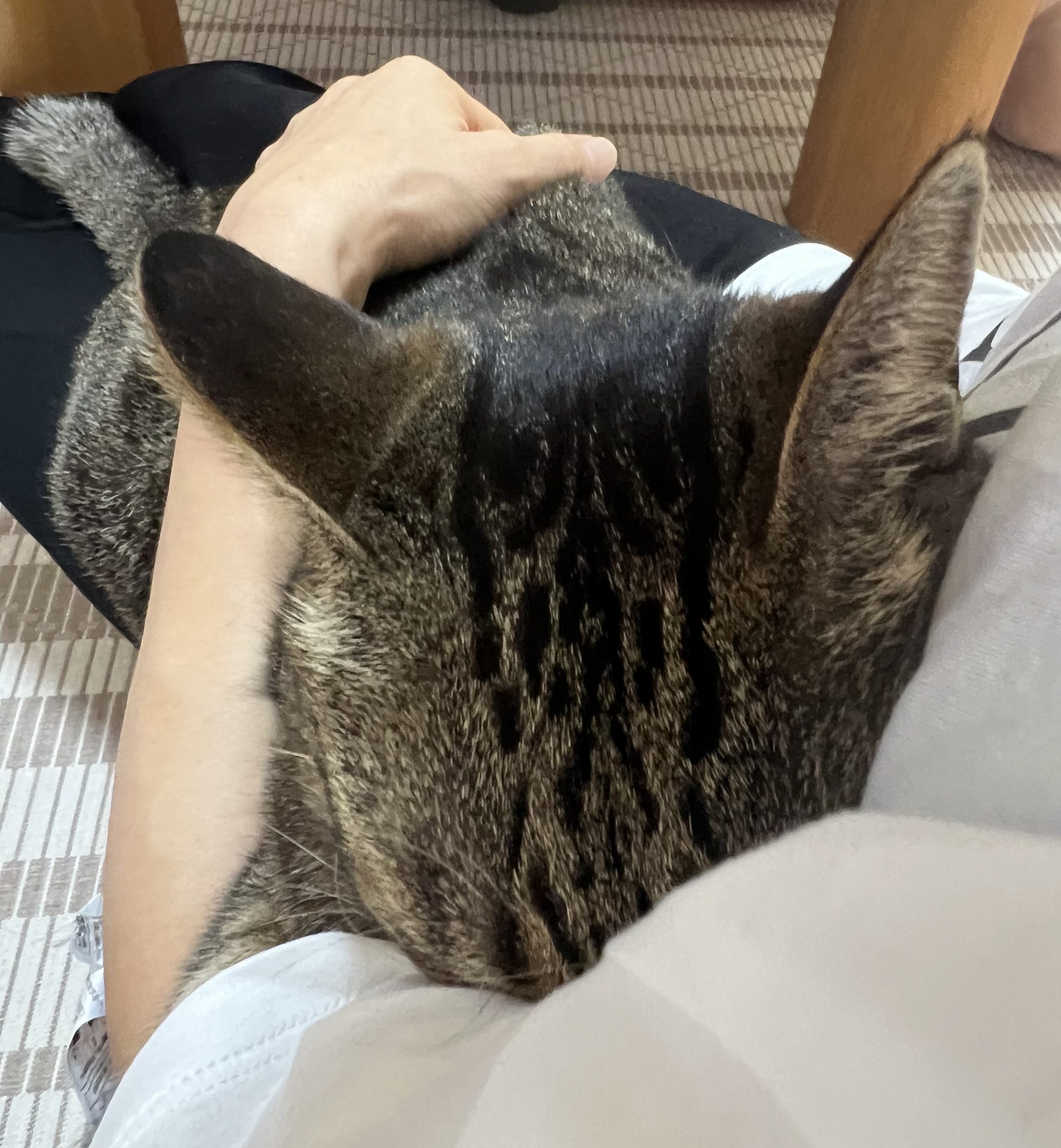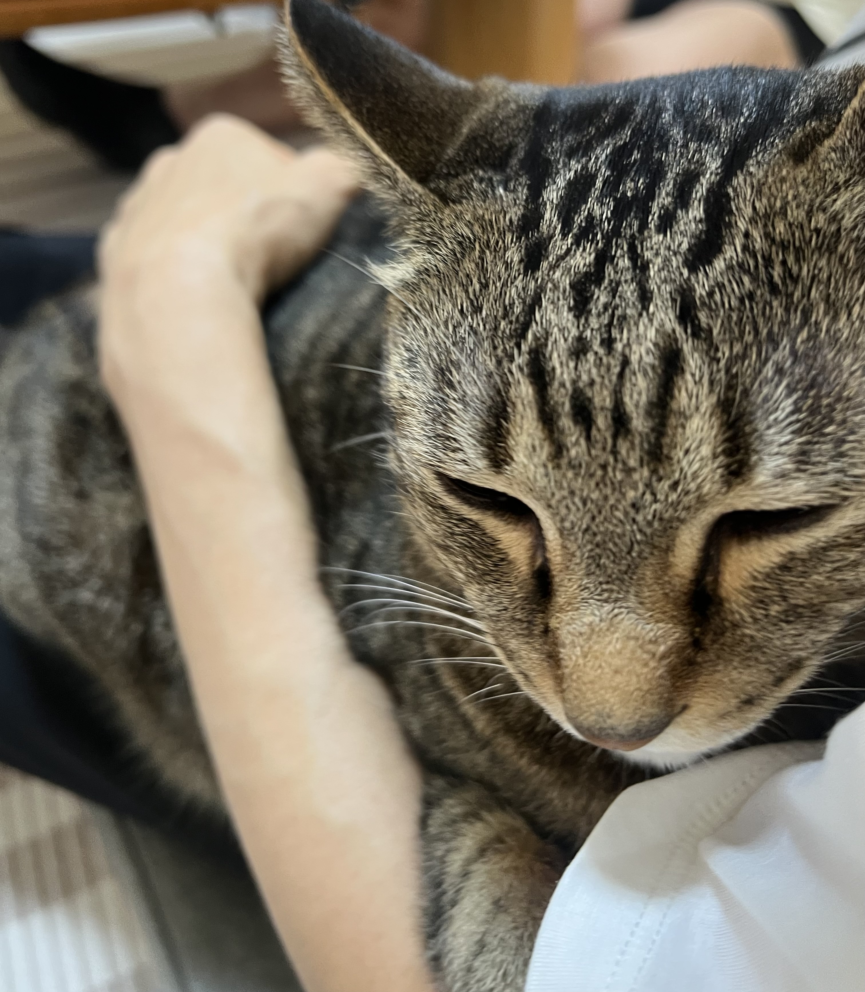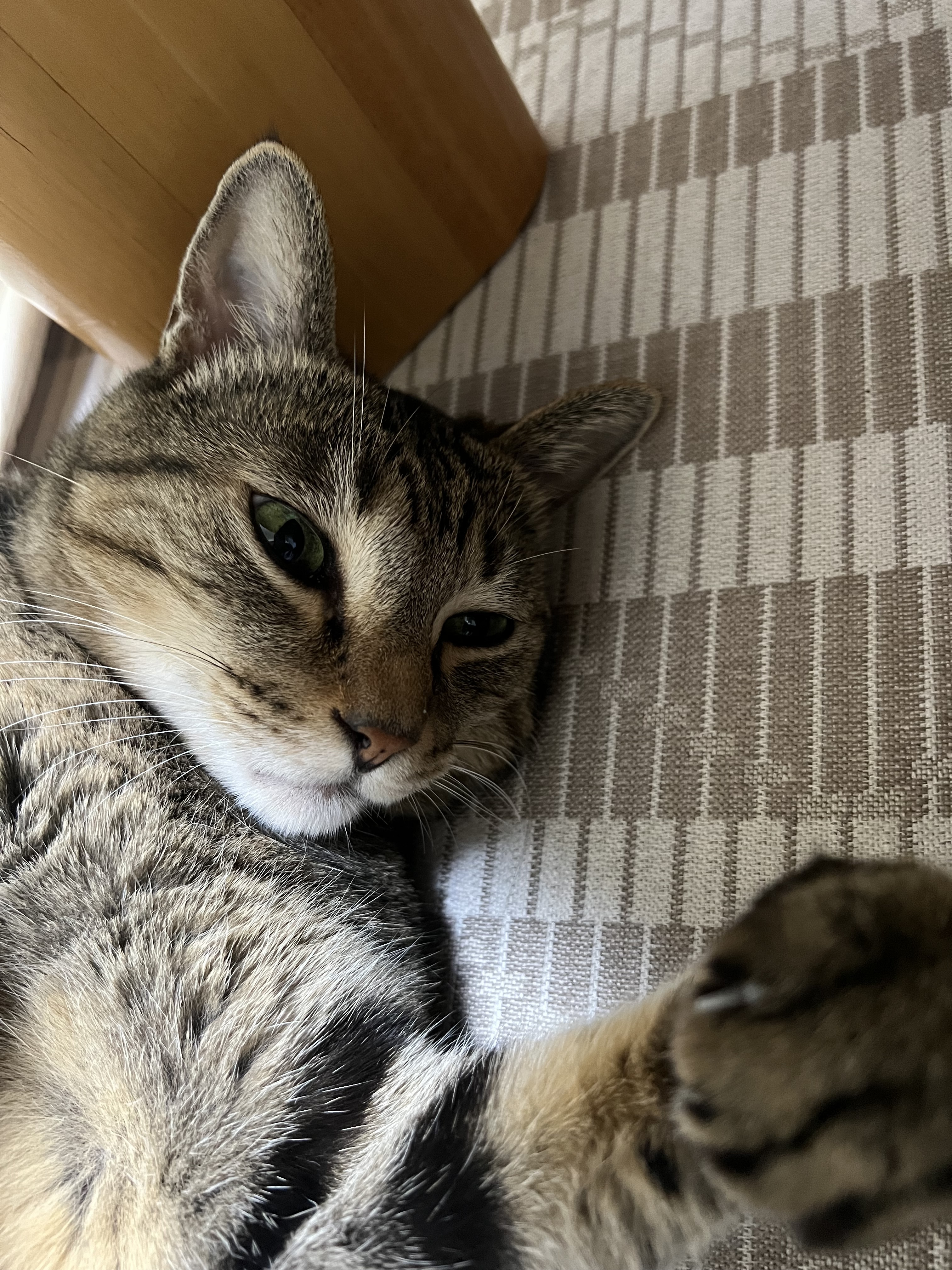 とまとは私がダイニングテーブルで何かやってたので、ここに来て寝ていました。