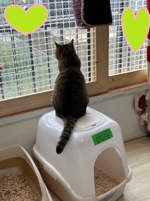 「ぽこ」がお外を眺めていました。黄昏ているらしい(≧▽≦)