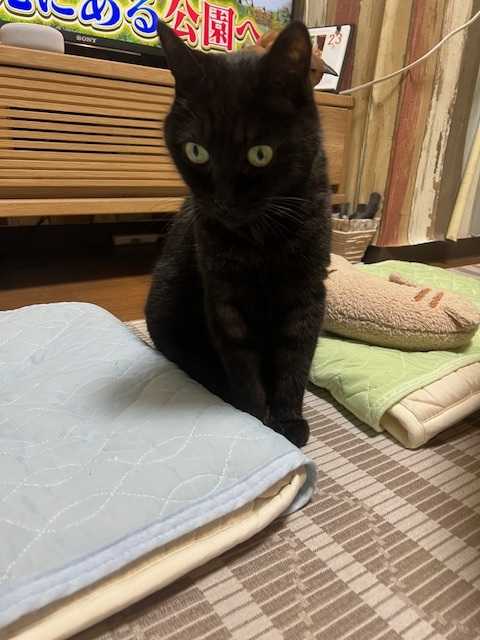 おふとんに寝なさいと言っても、とまとの匂いがするからいやだって。