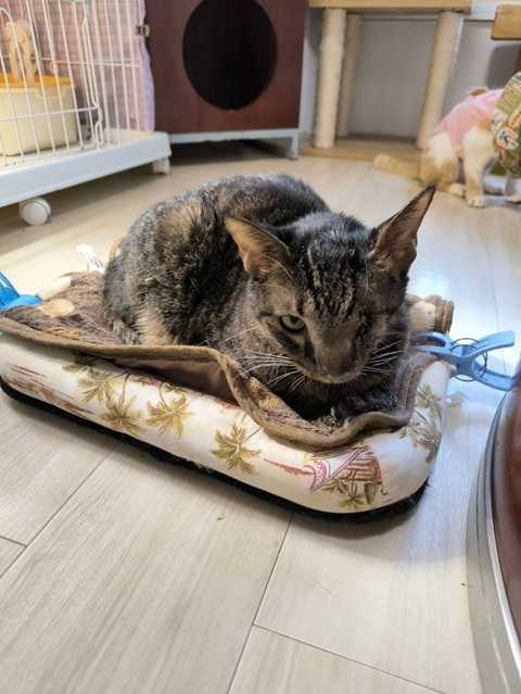 「いな」が小さいベッドではみ出していたので、大きい敷物を用意してくださったそうです。