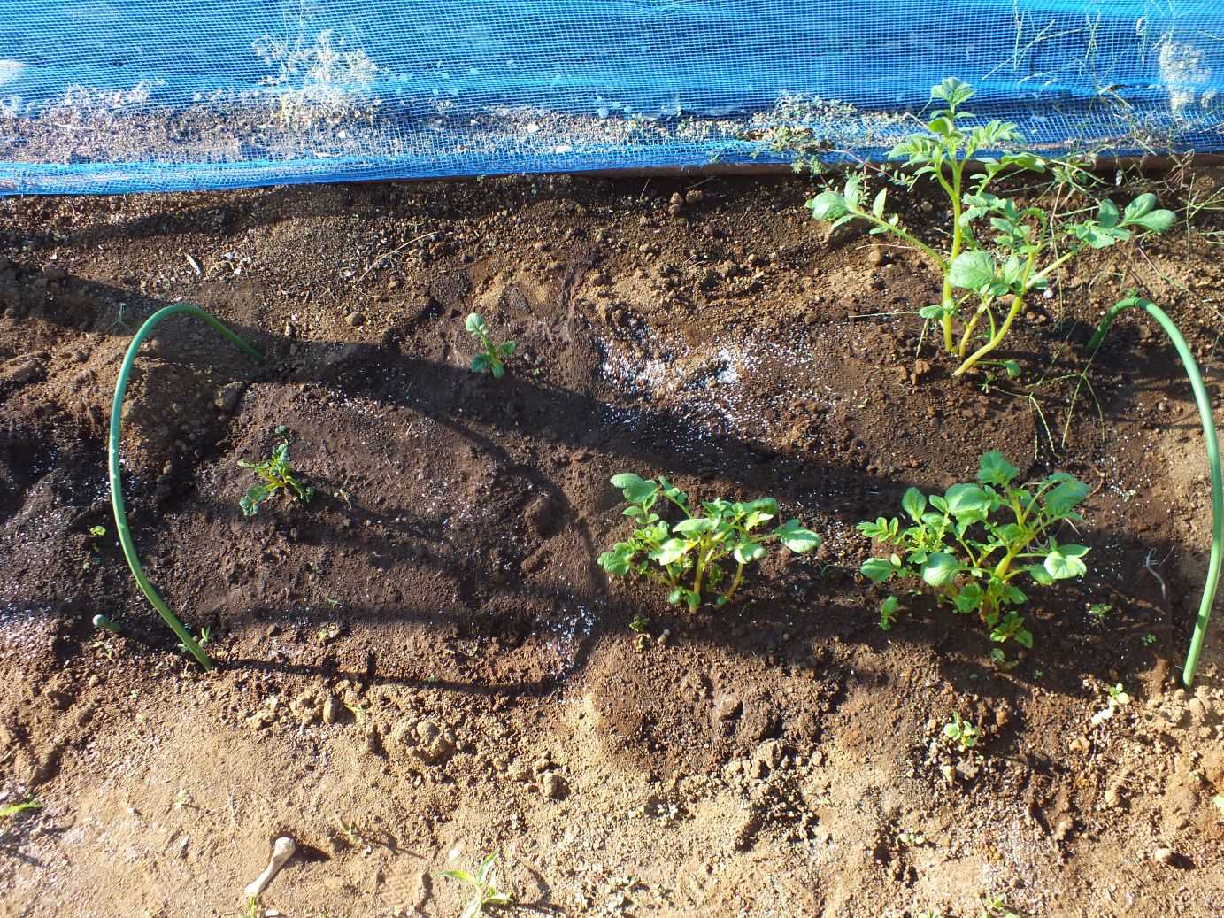 移設ジャガイモが定着に失敗した場合は、空き地が多い菜園になってしまいますが、そちらはもうライ太郎(ライ麦)の準備をして、何も植えないことにするつもりです。