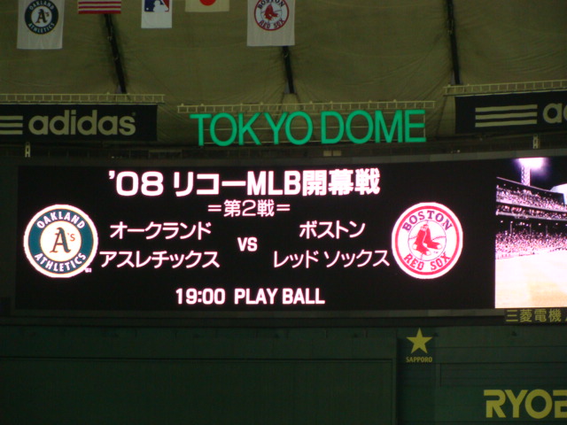 個人的には、前に一度マイアミで、マーリンズVSドジャースの試合を見たことがあるので今回で2回目のMLBの試合。でも東京ドームってこともあり、MLBの公式戦という感じがしなかった。始球式は、ハニカミ王子。場内は、レッドソックスファンが多かったが、個人的には松坂が投げないので、どっちが勝っても良かった。でも岡島とラミレスのホームランは見たかった。。。オルティスはいまいち調子に乗れていない感じ。 でも怖い。。。。試合は、アスレチックスの先発のハーデンはまぁまぁ良いピッチャーという印象があるので、ハーデンVSボストン打線となるか。なんとしても先制したいボストンだったが2回にオークランドに先制されると3回にはホームランで3点で4点のビハインド。ここで勝負あり?? しかし見たかったラミレスのホームランを見れたから嬉しかった。あの 打った後に、ボールの行方を見ながらゆっくり歩く姿を生で見れた。それから、ワールドチャンピオンカップも展示してあり感動。。。。思っていたより小さい???さぁ 今度は、セリーグの開幕だ!!!!!!!!!!!