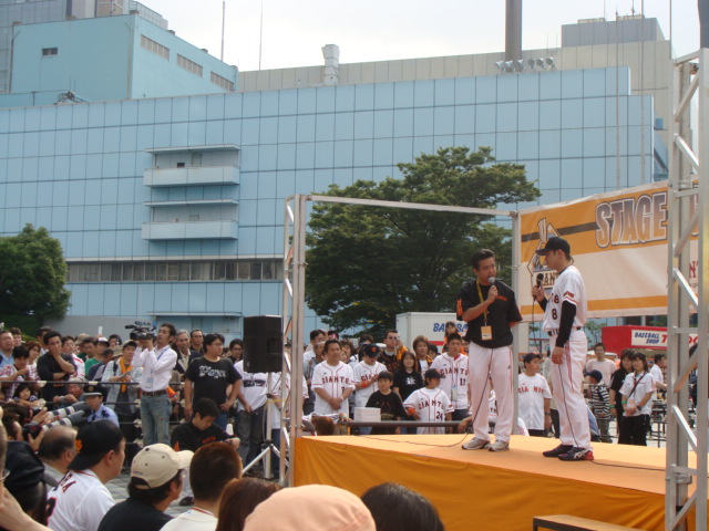 遅くなったが、6月18日のラミレスデーの時の写真。先日終った交流戦は、大健闘といえる4位。正直優勝争い出来ると思わなかった。優勝こそできなかったが、優勝争いが出来たことは大きいと思う。この悔しさをまずはオールスター前の試合で晴らしたいところだ。6月27日からの広島戦からオールスターまでの34日間で、試合数は、28試合。今シーズンを左右する大事な時期だ。そんな中、高橋尚成が今日1軍に合流し、近いうちに上原も合流。尚成は先発に加わり、上原はしばらく中継ぎの予定だそうだ。とにかくこの2人の合流は頼もしいが、あくまでも合流であって、「復活」ではない。1軍で活躍してこそ復活なのだ。8月はオリンピックもあり何人かいくかもしれないが、今年のジャイアンツは不幸中の幸いで、オリンピックで抜けても闘っていけると思う。とにかく、オールスター前のこの28試合が大事で、ナベツネが言うように3位以内が目標なんかではない!リーグ優勝。そしてCSで勝って、日本一だ。すでに竜のシッポは見えた。オールスター前までに、虎のシッポが見えるぐらいまで近づこうじゃないか!と、その前に27日から鯉でも食いますか!
