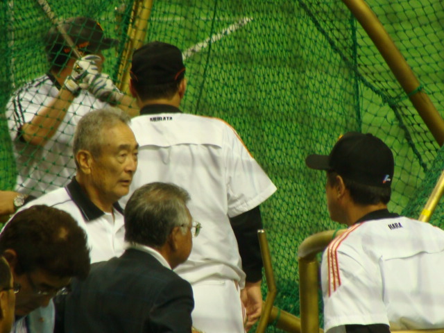 試合前のジャイアンツのバッティング練習中の写真。金田、山本浩二、そして原監督。王監督と桑田。。。何を話していたんでしょう・・・・・右から、環境大臣、倖田來未、中田横浜市長。始球式はその倖田來未初 生倖田來未でした。今日の試合は、ナイスゲーム!ナイスゲーム!こんな今シーズンの中で一番劇的な試合。小笠原、ラミレスのどちらかがあと1本出てれば。。。というのもあるが、毎試合活躍する選手なんていない!個人プレーではなくチームプレーなのだから、そんな時は誰か他の人がカバーすればよい!12回表は、松田にホームラン打たれる気がしてしまった。何故かピッチャーは東野だし。西村は調子わるかった?そうだとしても 右の松田であっても最初から山口だったんじゃないか。まぁ 俺たちにはわからない なにかがあったのだろ。俺らは 所詮素人。。。。あと 大道は、今日のバッティング練習で、ガンガンスタンドに打ち込んでいていたのを見ていたので、9回の裏 2-3 になったけど、ヒットではなくてホームランが出るんじゃないかと思った。まぁ でも12回に松田のホームランで1-2になったところでさすがに終ったかとおもった。ヒーローインタビューを受ける 木村拓也!明日、ジャイアンツが勝って、阪神も勝てば交流戦はジャイアンツの優勝!明日も内海が、和田と投げあい 後半まで接線にもちこみたい。序盤に内海が崩れると厳しい。とにかく、優勝考えるより 福岡で連敗したお返ししないと!