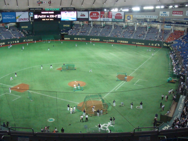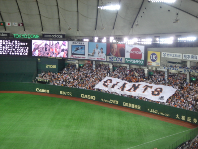 ジャイアンツVSヤクルト25,26日と大逆転勝利!!!特に昨日は、2試合見たような感じ、前半は増渕をなかなか攻略出来なかったが、後半は打線が大爆発!! しかし前半にもう少し工夫が必要だったか。それから上原はここ何試合か良くなってきた。気迫ある投球という感じだ。それから昨日は試合前に皆で初2階席に行ってみた。2階席オーロラビジョンを背にして撮影 ライトスタンドが遠い。。。2階 ライト側 ここは通風孔が近く涼しい風が吹いてくる!!!!ここはスカイシートって言うんだっけ? 最前列に座ると足がすくむ。。。。。壁には何個かボールが当たった跡があった。 すご過ぎる。。。。。ライトポールエキサイトシート、1塁側スタンド。以上、東京ドーム2階席の探索でした。今日も試合を見にいくが、オールスター前あと3試合。のこり試合3連勝めざせ!!!!