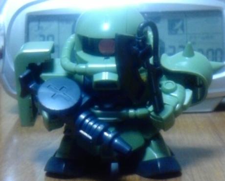 このごろ暇だったので何かないかなぁ~とか考えていたところえ~何の脈絡もなく、あっそうだガンプラ作ろうっ!とか思ったので作っちゃいましたwといっても金もないし面倒くさいのいやだしぃ ・・・ じゃぁ作んなきゃいいじゃんwとか考えてググッていたら、安上がりで素組みで作れるガンプラがあ~るじゃないですか!つーことで早速、ネット通販で購入して作っちゃいました。色とか接着材なしの素組みで(爆1個にかかった時間、TV見ながら(w)の15分程度。恐らく、素組みでも真剣にやれば30分はかかっていただろう。もちろんTV見ないでさっさと作れば5分だろうw今回は2機(一応そう呼ぼう)買ってどっちも作っちゃったがとりあえず1体をこの世にさらそうではないか(・・・素組なのにw)買ったのは バンダイホビー事業部より発売されている 「SDガンダム BB戦士」プラモデルシリーズなのだが今回、お目にかけるのは機動戦士ガンダムより SDガンダム GGENERATION-F仕様のNo.218「ザクIIF型」である。 いわゆる1stガンダムのいっちゃん最初にでてくるMSの しかも大量にでてくるザコキャラの極ふつーの「ザク」である。 アニメでは最初に登場するのはサイド7に進入する3機のザクだったと思う。そして最初のセリフはその中1人デニム曹長の 「スレンダー、お前はここに残れ」だったはず。このザク¥500と意外に高い(安いのか?いいや私は高いと思うぞ)だけどスーパーデフォルメにしちゃー結構良くできていて¥500の価値はある。稼動領域があってポーズがいろいろとれるしSDとしてではあるがバランスがとれていて造詣もかっこいい。ちっこいけど、これが大量にいればそれなりに迫力ありそうだw自分は1体以上買う気ないけどね。これ実は頭がパカっと開いてモノアイまで動かせちゃう優れものなのだ。ちなみにこのとおり足の裏まで結構ちゃんとしてるつーワケでたまには馬もいいけど気分転換もしなきゃね3月の弥生賞までには10体ぐらいガンプラ作ってアダムスピークを応援に中山へ行くぞー!う~ん、全部本気だw