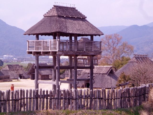 こんばんは。柴犬さくらです。ここは、吉野ヶ里遺跡です。物見やぐら「魏志倭人伝(ぎしわじんでん)」に記された楼観(ろうかん)跡と推定される物見やぐら跡。内壕の内側で発見されました。吉野ヶ里遺跡は、周囲に小さな集落がいくつもあって、それらを統括していた中核集落と考えられています。物見やぐらは外からの侵略者を監視する見張り台だったようです。復元された物見やぐらは床高6.5m、高さは12m。佐賀平野を遠くまで見渡せます。普段は登楼できませんが、春と夏に登楼会が催されています。折角ですので櫓の上に昇ってみました。周囲を柵と堀で守りを固めています。この櫓の上に楯を持った兵士が見張りをしていたようですね。※吉野ヶ里遺跡(よしのがりいせき)は、神埼市と吉野ヶ里町にまたがり、推定延長2.5kmの壕に囲まれた日本最大級の規模の弥生時代の環壕集落(かんごうしゅうらく)跡です。 この中からは、多数の住居跡、高床倉庫群跡、3,000基を超えるかめ棺墓、弥生時代中期の王族の墓である墳丘墓(ふんきゅうぼ)などが発掘されています。墳丘墓からは、高度な技術を要する有柄銅剣やガラス製の管玉などが出土し、大陸との交流をうかがわせます。 平成元年に一般公開されたときは、中国の史書「魏志倭人伝(ぎしわじんでん)」に記された邪馬台国の姿を彷彿させ大きな話題となりました。 吉野ヶ里遺跡は、朝鮮半島経由で伝わった米作り文化を取り入れたムラが、クニの中核集落へと発展していく姿をたどることができる貴重な遺跡です。遺跡には、物見やぐら、竪穴住居等が復元され、弥生時代の雰囲気を体験できます。併設の展示室では出土品などを見学できます。 また、2001年4月にオープンした吉野ケ里歴史公園は、広大な敷地を入口ゾーン、古代の森ゾーン(現在整備中)、環壕集落ゾーン、古代の原ゾーンと4つのゾーンに区分けし、弥生時代を十二分に体験できる空間となっています。入口ゾーンでは、吉野ケ里歴史公園の利用に関わる様々な情報を知ることができ、環壕集落ゾーンでは、弥生時代の建築物である主祭殿や物見櫓の見学、弥生人の生活や文化なども体験できます。古代の原ゾーンでは、広大な芝生の中に物見櫓風の木製大型遊具などがあり、体を動かして楽しむことができます。これは、北内郭の祭殿です。りっぱな建造物ですね。住居の中の様子です。王様と妃だそうです。こんな感じの衣服を着ていたようです。ここは、武器等の装備品の一部が展示されています。木の鎧がありました。この大きな壺はなんでしょう。実は遺体を埋葬するための壺だそうです。遺跡の発掘でこのような形で遺体が納められていました。それ以外の壺や煮炊きをする鍋などもありました。銅の刀剣等も遺体とともに埋葬されていたそうです。これは、ガラス製の管玉も出土しています。グ