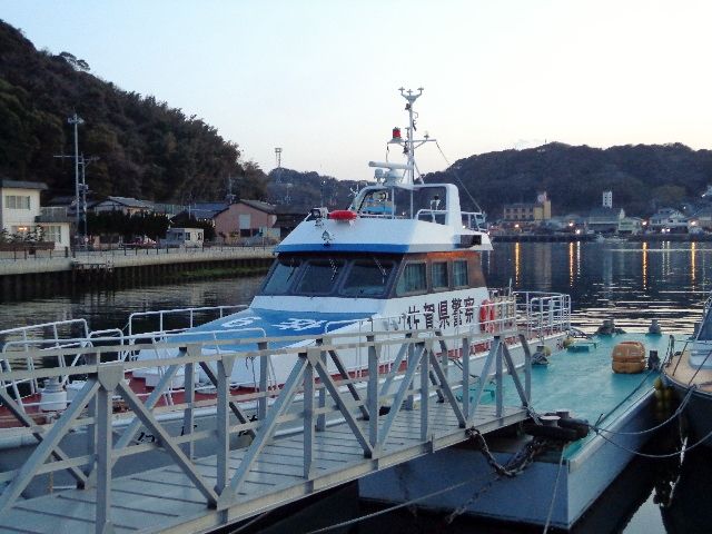色々な漁船等が沢山停泊中です。上の写真は、佐賀県警さんのパトロール船です。さあ、これから朝食をとったら唐津城に向かいます。