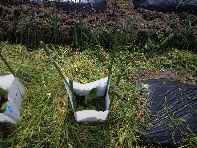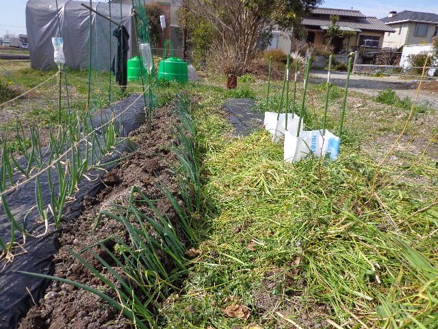 溝には、乾燥防止で刈り取った青草を薄く敷き、乾燥防止のためもみ殻燻炭を後日入れようと思っています。