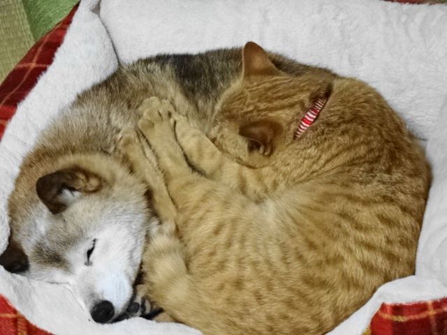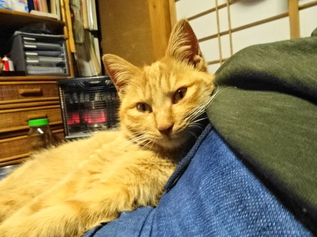 「にゃん」のあくび♪外のパトロールから帰って来てまどろんでいます。