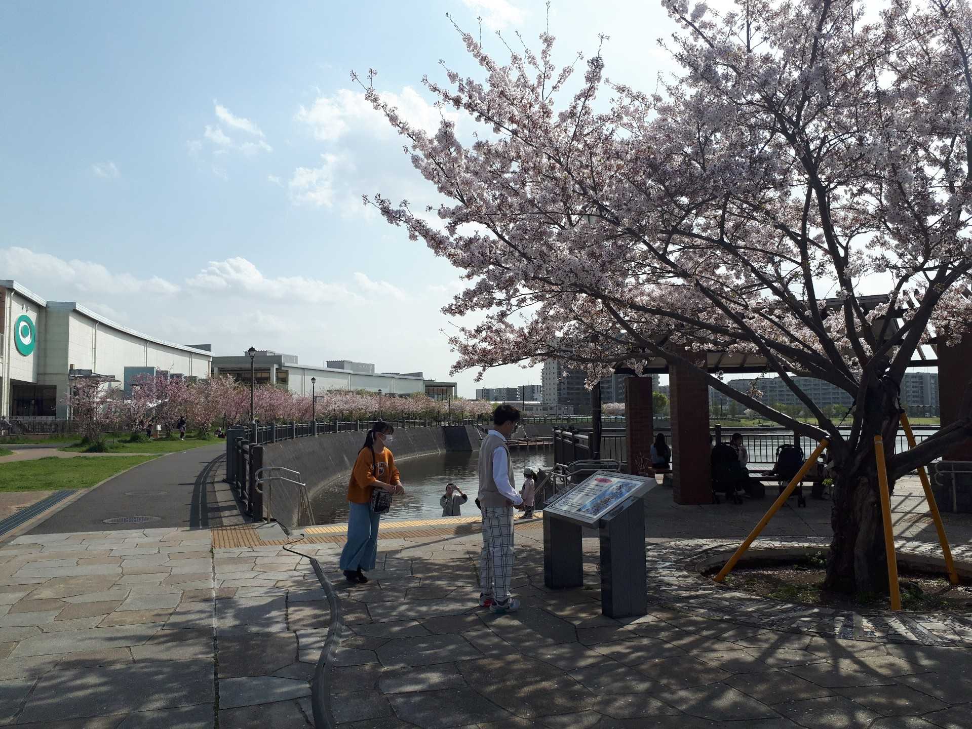 レイクタウンのアウトレット脇に桜並木があり、天気も良いことから写真撮影を楽しんでいる方が多いです。