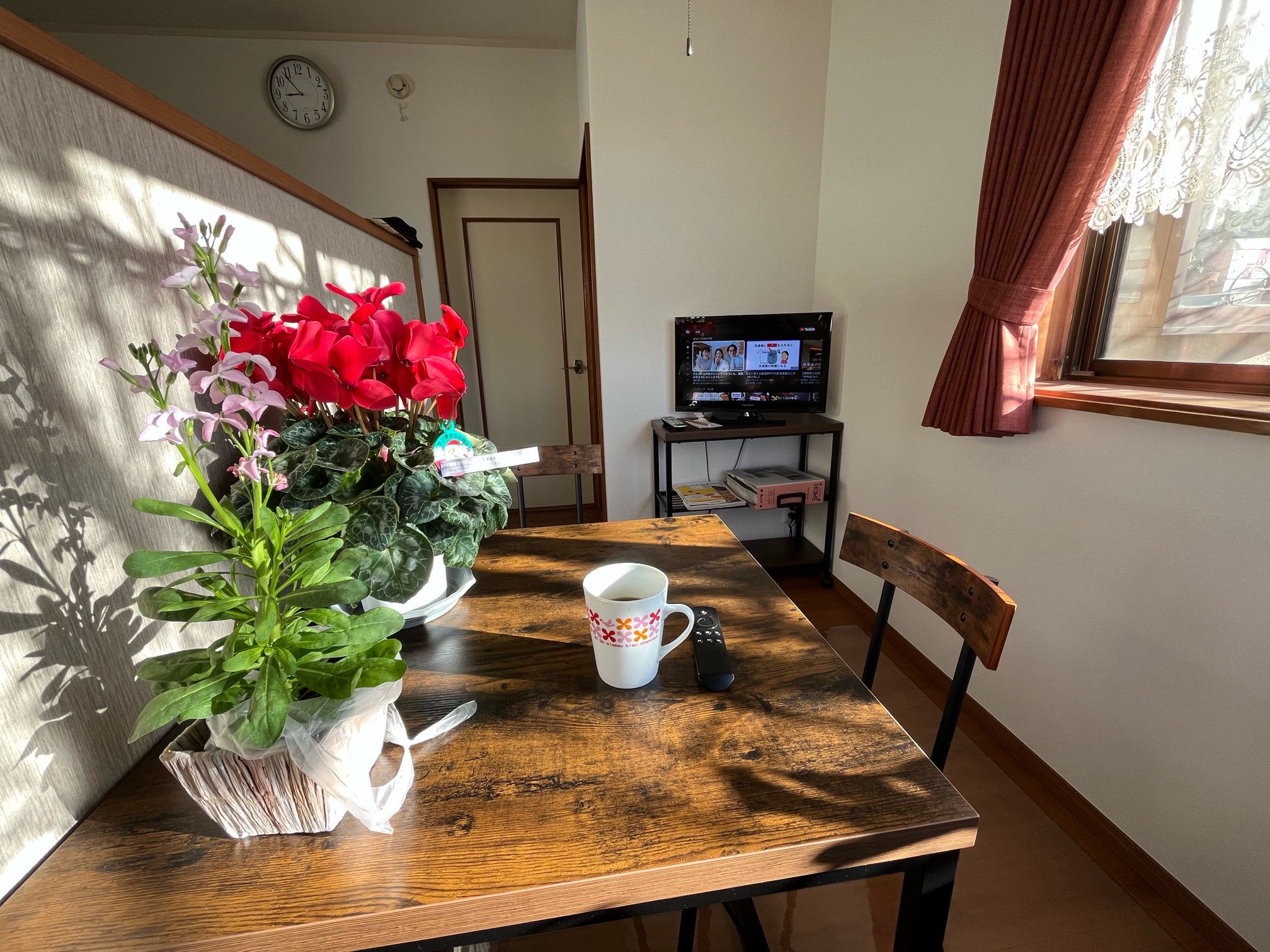 キッチンと仕切ると、こんな小部屋て喫茶店のようになり、陽当たりが良いのでポカポカです。さあ、これからお仕事頑張りましょう。穏やかな一日になりますように。♪