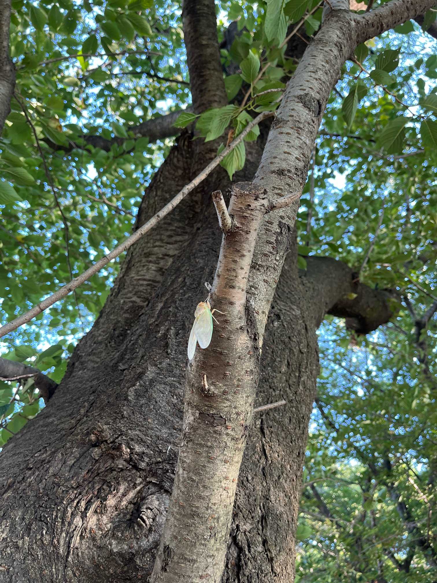 近くの枝を見ると羽を伸ばしているセミがいました。