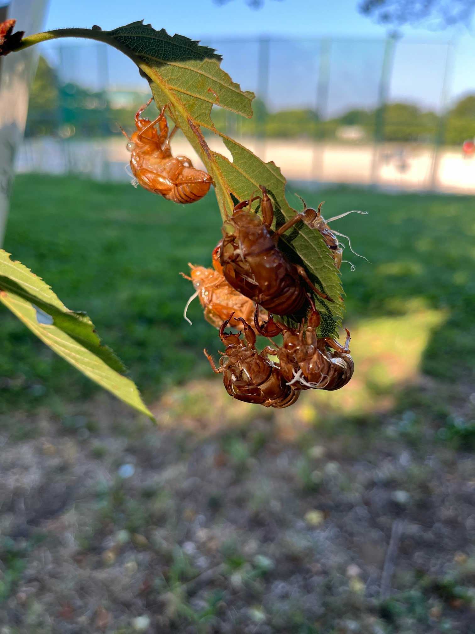 出羽公園の散歩道、今日はセミの脱皮が見れました。