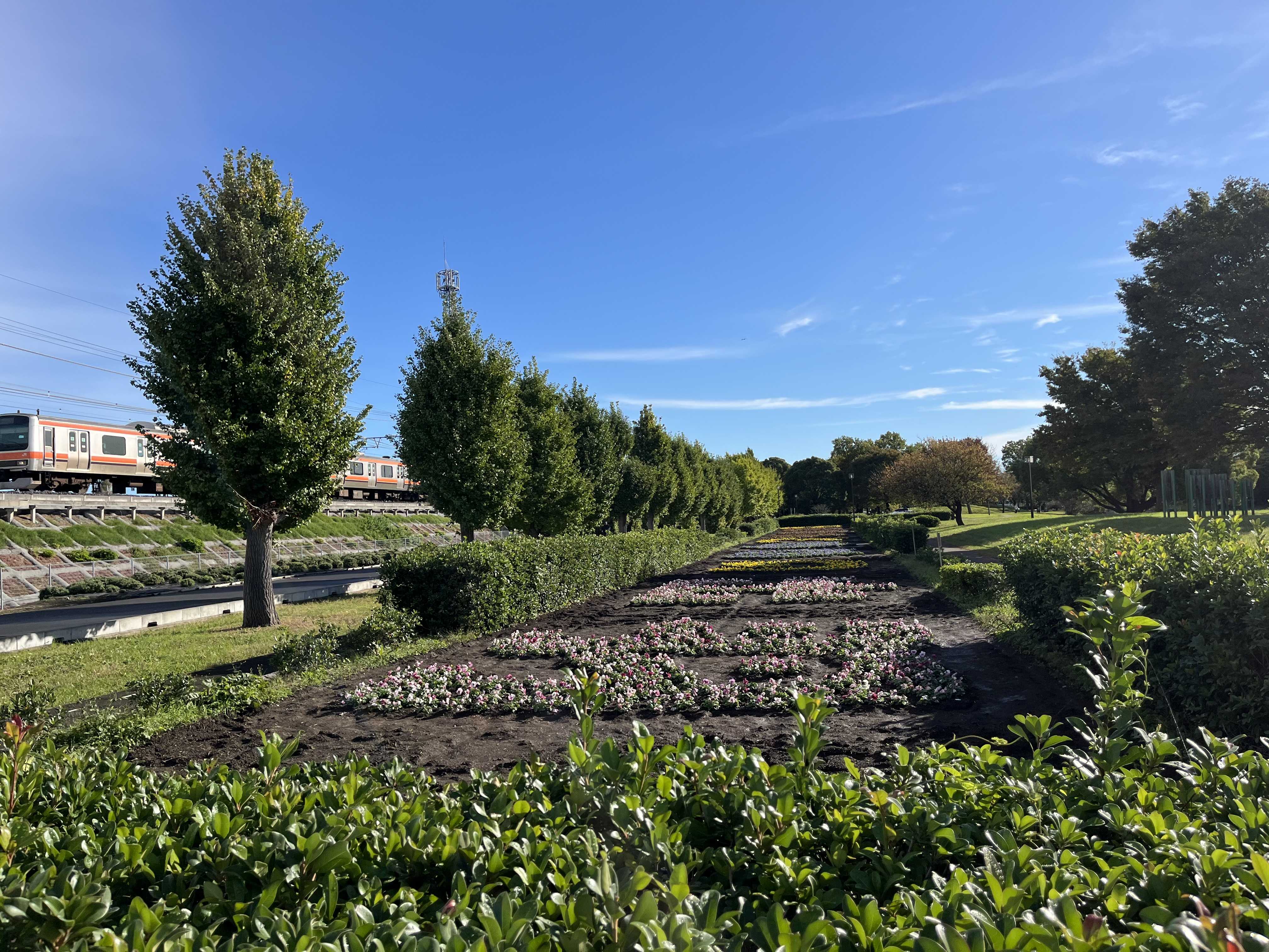 出羽公園の朝散歩です。右側の用水を除きますと。