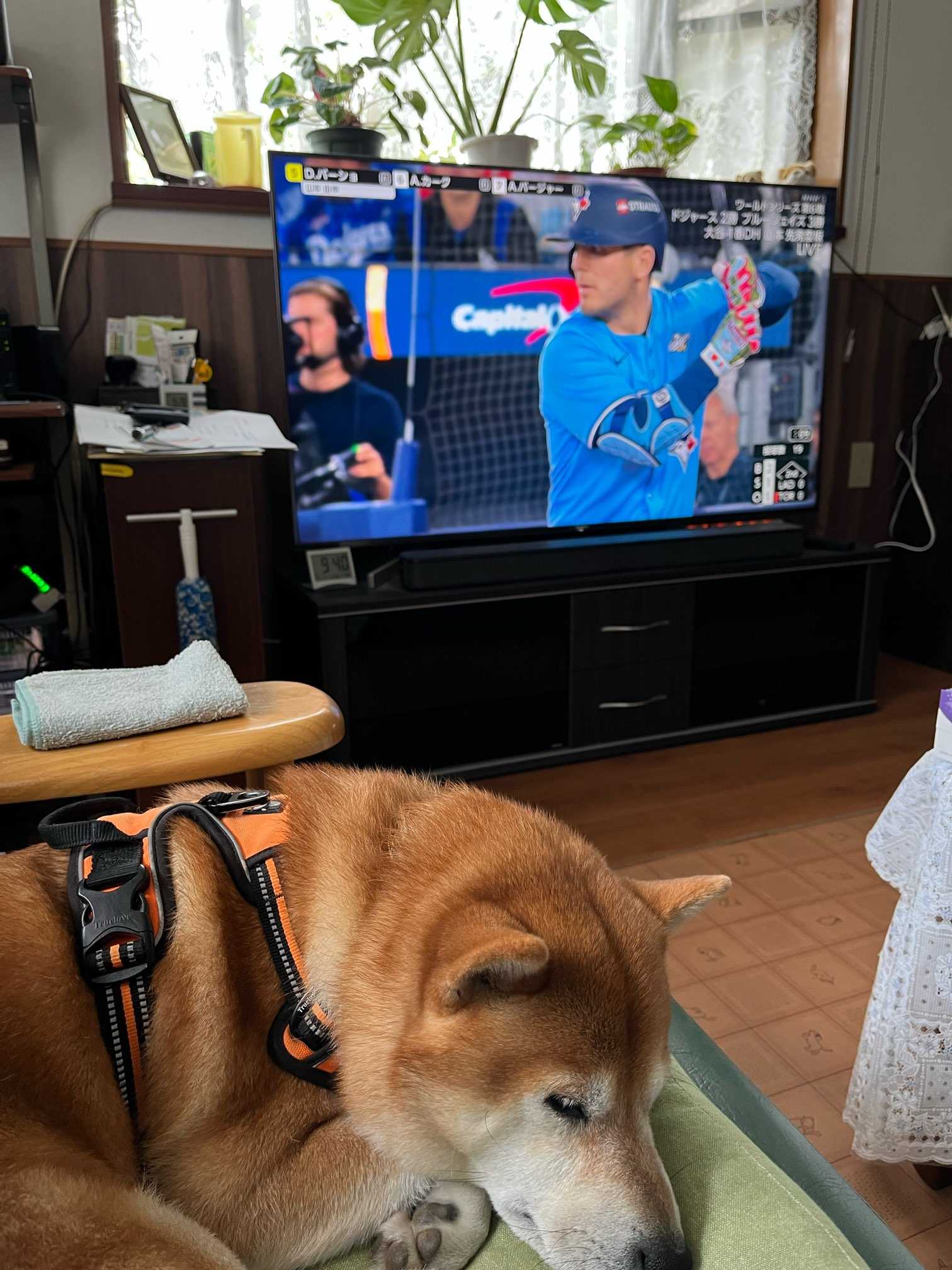 散歩の後は、王手のワールドシリーズ第6戦、ドジャース2勝対ブルージェイズ3勝を観ましょう。白熱した勝負に釘付けですね。