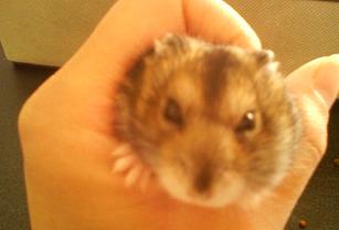 我が家で飼っているハムちゃんなのですが購入してからドンドン肥えてとうとうメタボぎみに・・・ヾ(・ω・`;)ノ お腹はたるんで、手に乗せてもズッシリ重い・・・これはいけないとダイエット作戦を決行しているのですが名づけて(エサは少な目に、でも野菜は食べよう大作戦!!)最近は1匹逃げてしまったハムちゃんの事がショックで世話が手付かずで(でもエサはちゃんとあげてますよ~少なめに!!)しばらく掃除してないな・・・なんて思い、久々にハムちゃんの様子をみてみるとんっ??なんか・・・ちっちゃくなってる~??久々に手に乗せたハムちゃんは「メタボハム」から「スリムハム」になっていました~そう言えば、顔が細くなったなぁ~と思いながらも手に乗せていなかったので今まで気づきませんでした^^;ズッシリしないし、あの腹の肉がない~ダイエットは大成功したようです!! 次は私のダイエット??(>▽<;; アセアセ あ~無理だ・・・