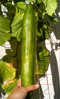 今年も我が家はプランター菜園をしていて「キュウリ」・「トマト」・「インゲン」の収穫ができました~(少量ですがね)その「キュウリ」なんですが・・・・私、収穫のタイミングをはずしまして・・・・気が付いたら「デカデカキュウリ」になってしまいましたヾ(・ω・`;)ノ とっても重いです「キュウリ」って名のとおり「ウリ」だったんだ~今まで食べていたのは「キュウリの赤ちゃん」だったんだね^^;もはや収穫できず・・・どうしたらいいものか・・・(-_-;)そして「デカ野菜」の第2弾^^最近「長~いナス」をもらいました~娘、長すぎて怖いらしい・・・「ヘビ」なんかと勘違いしてるのかしら~(>▽<;;