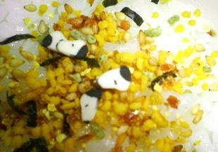 「ふりかけご飯」が食べたいと言う息子にスヌーピーの「ふりかけ」をかけてあげると息子が急に大喜び~o(≧∇≦o)(o≧∇≦)o「お顔が~お顔が~」と興奮してるので息子のご飯を覗いてみると~ちっちゃいスヌーピーが入ってました~(≧▽≦)ノご飯よりちょっと大きいぐらいのミニミニサイズ!!私はあまりの小ささに気づきませんでした^^「キャラクターのお茶漬け」って可愛いカマボコが入っているけど「ふりかけ」にも入っているなんてビックリです~あれから「スヌーピーふりかけ」を探しているんですがまったく売っていないんですよね・・・もし色々な「キャラクターふりかけ」にミニミニカマボコが入っていたら子供は絶対大喜びですよね~他の「ふりかけ」にも入れてくれないかなぁ~丸美屋 クレヨンしんちゃんふりかけ ミニパック20袋入り 200円丸美屋 プリキュアふりかけ(カルシウム入り)ミニパック20袋入り 200円