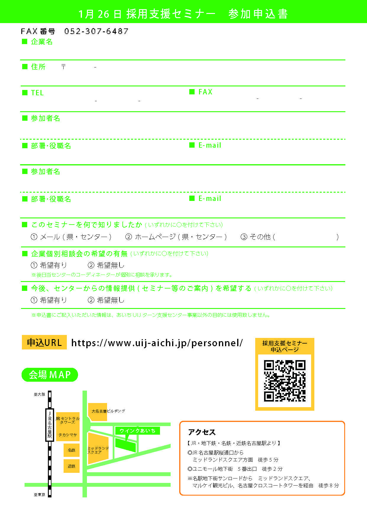 あいちUIJターン支援センター「採用支援セミナー」の参加者を募集します