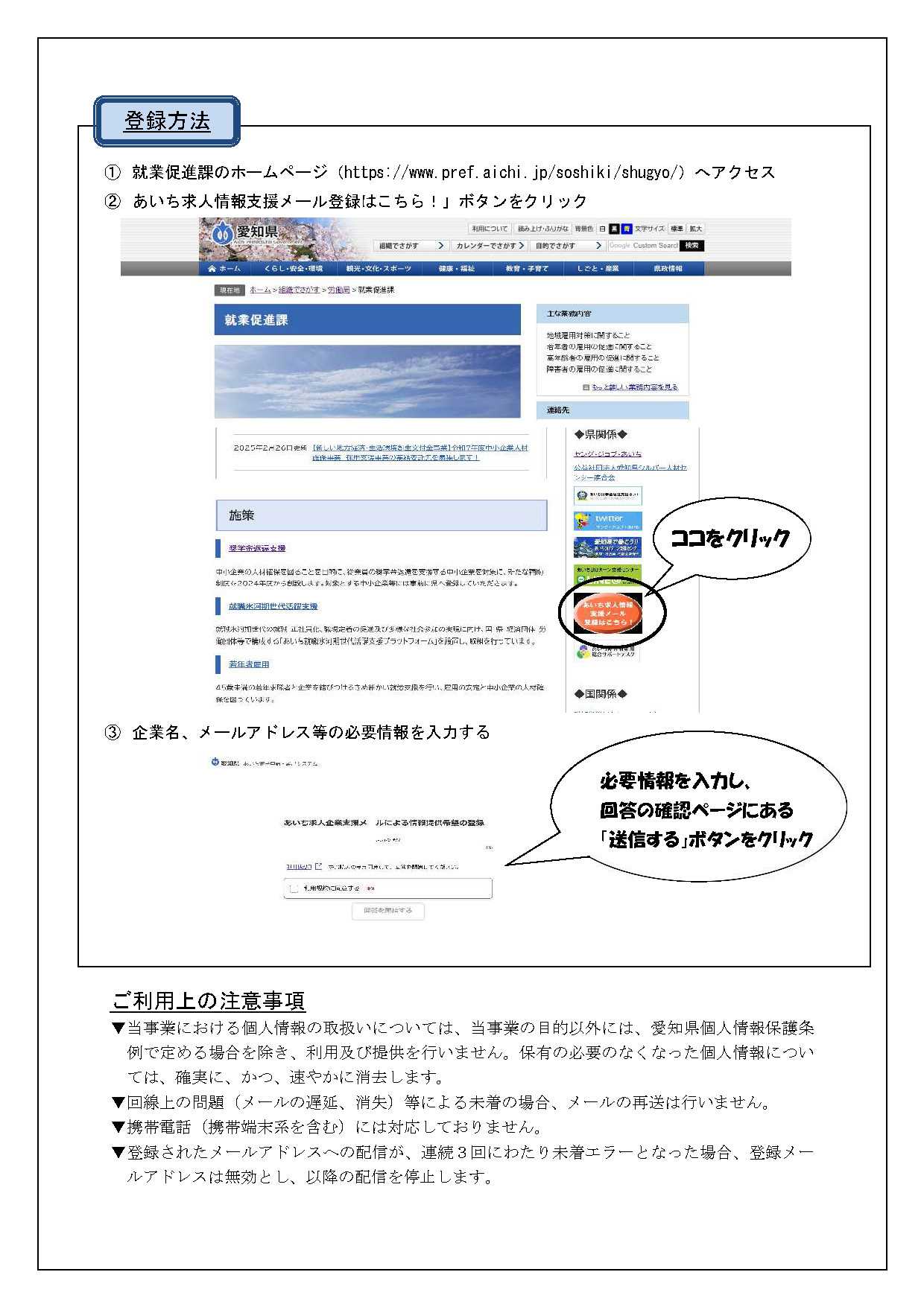 ② 「あいち求人情報支援メール登録はこちら!」をクリック