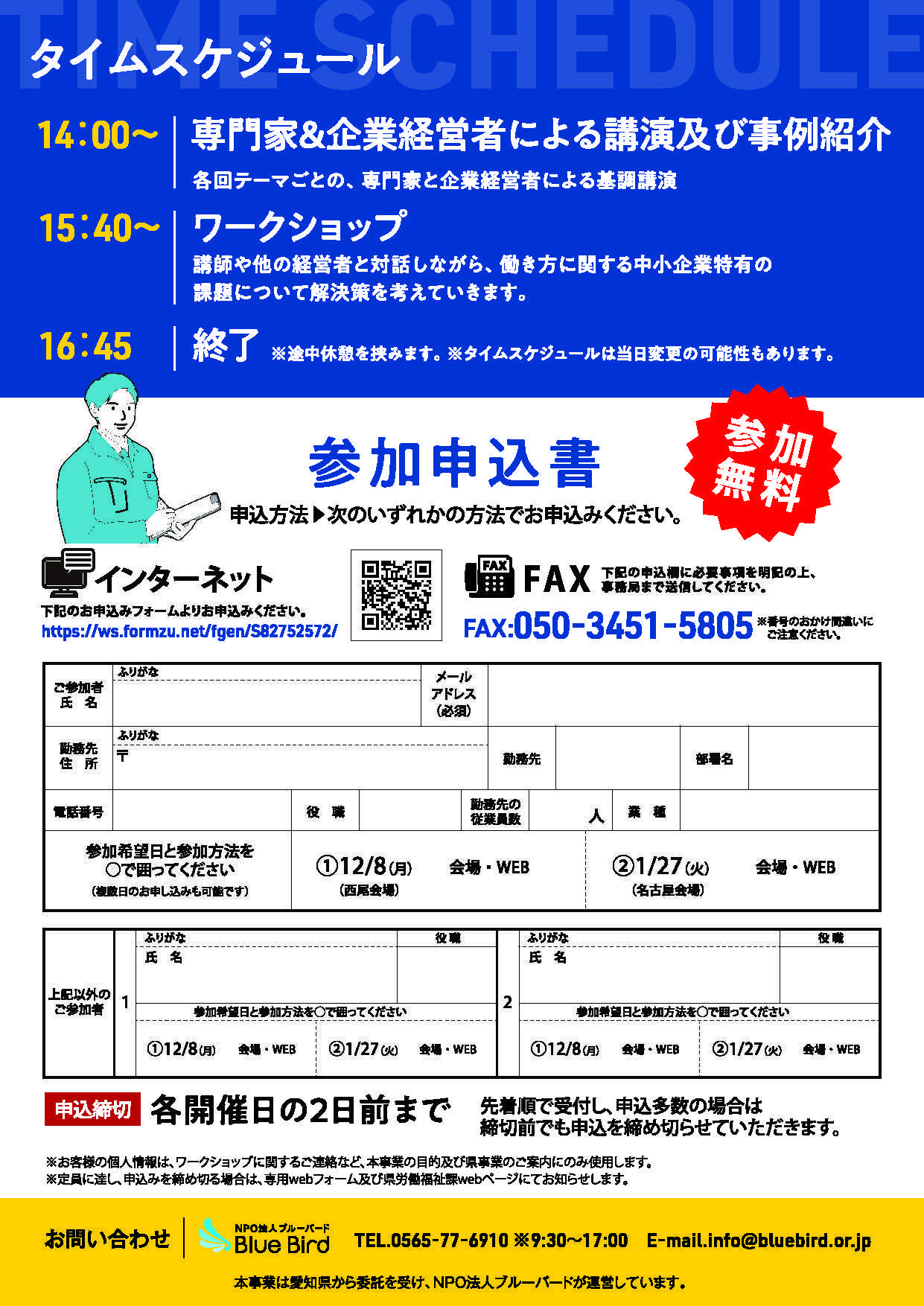 #働き方改革 #愛知県 #西尾市 #名古屋 #ウインクあいち #中小企業支援 #職場改善 #人材育成 #定着支援 #ブルーバード