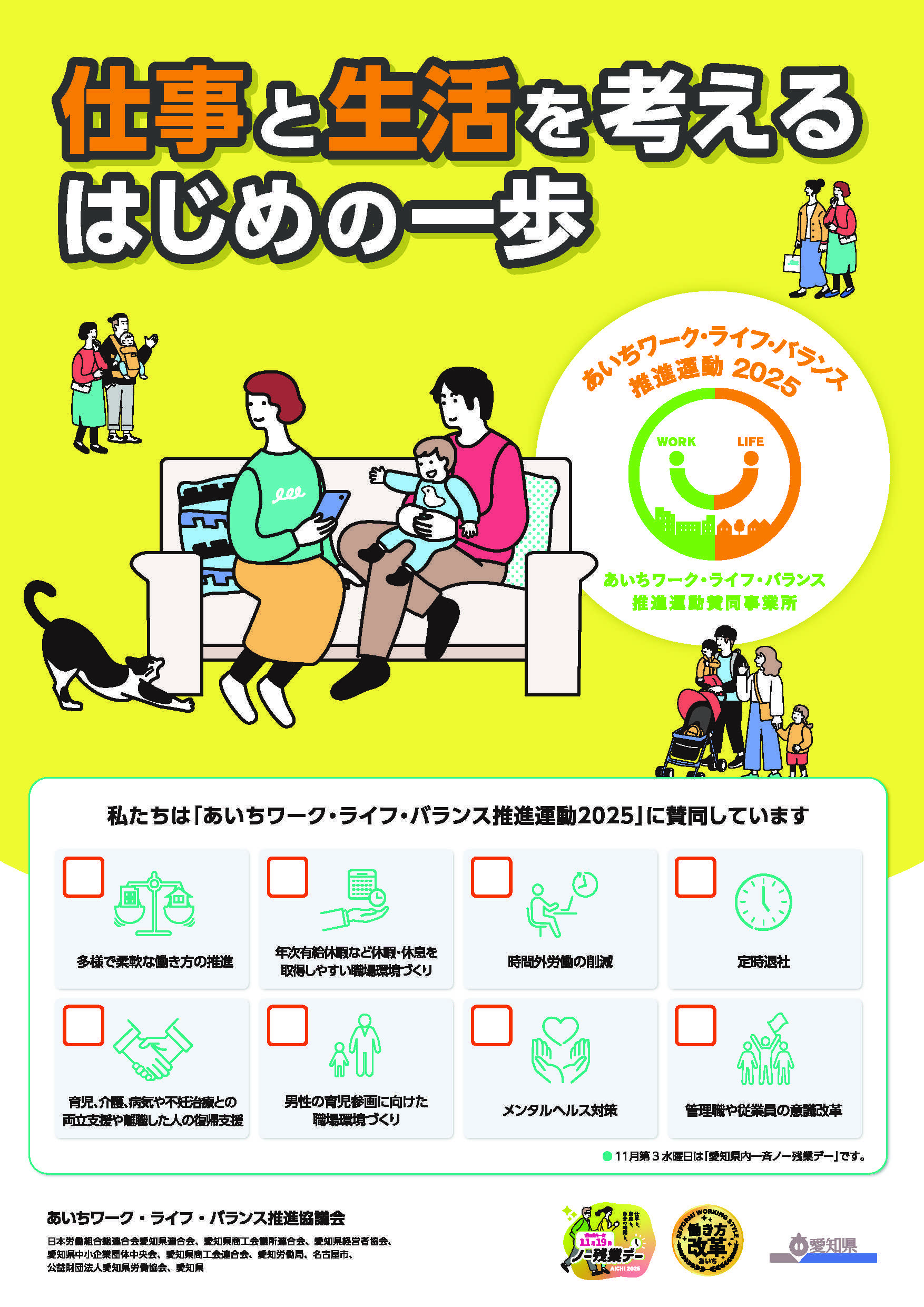 いま、愛知県では 「あいちワーク・ライフ・バランス推進運動2025」 が展開中です。10月10日時点で 38,857の事業所 が賛同し、県内企業全体で「働きやすい職場づくり」を進めています。この運動の目的は単なる制度導入ではなく、・人材の確保・定着・生産性の向上・企業ブランドの向上という“経営的な成果”の創出にあります。特に 11月19日(水)は「愛知県内一斉ノー残業デー」。経営トップが率先して働き方を見直す姿勢を示す日です。📅 賛同受付は 11月末まで。企業の信頼と持続可能性を高める取り組みとして、貴社のご参加をぜひご検討ください。🔗 詳細はこちらhttps://famifure.pref.aichi.jp/aichi-wlbaction/🔗 賛同事業所一覧https://famifure.pref.aichi.jp/aichi-wlbaction/assets/file/list_japanese_9.pdf#ワークライフバランス #サステナブル経営 #人材戦略 #働き方改革 #愛知県 #ノー残業デー