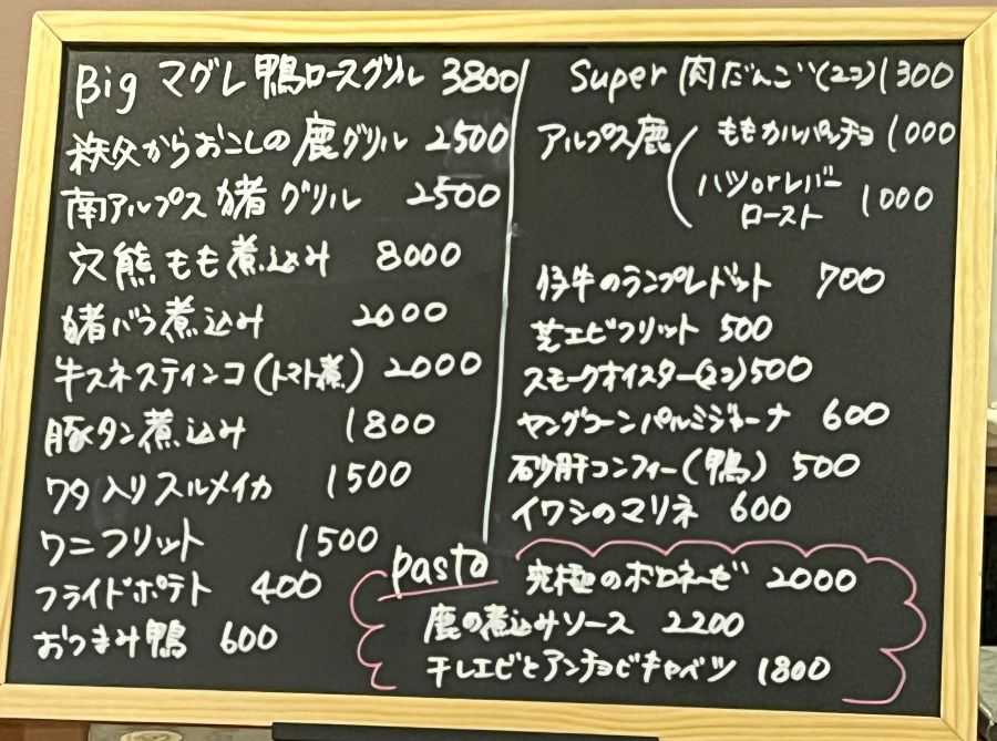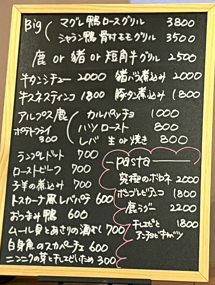 毎月のように通っていたBistoria新所沢店。この夏はいろいろと忙しかったり体調不良だったりして気づくと2か月ぶり。いつもinstagramのメッセージを送って、席があるか確認してから向かうのですが今回はメッセージに気づいてもらえず、そのままお店へGo!いつもの指定席(?)は埋まっていたので、カウンター席へ。黒板が壁掛けになっていました。今までスタンドを置いて立てかけていたのにね。さて。何を食べよう。カツオの藁焼きカルパッチョがあるぞ、プリンもある!「プリン、終わっちゃいました」・・・残念。じゃあ、白ナスと里芋食べたいわ。カツオの藁焼きカルパッチョ。マスカットとシソを使ったソース、バルサミコがカツオに合うこと!白ナスの重ね焼き。ソースが濃厚で美味しい!おかわりしたくなりました。里芋のフリット。「最近はイタリアンと言わないことにしました。 ジビエと地元野菜とワインの店ということで☆」里芋も所沢産。ちなみに所沢は里芋が美味しい地域です。メインは牛スネ肉のスティンコ(トマト煮)。ワインが進む。もちろんワインは飲み放題コースで注文しています♪さて、〆の炭水化物。うなぎのリゾット。うなぎがリゾットにこんなに合うなんてね。どれも残さず食べて、飲んで、他のお客様がいなくなっても飲み続け、後半戦は店主と飲みながらおしゃべり大会。つまみにチーズとレバーパテの盛り合わせを頼んで、お店を出たのは0時近く。18時頃にお店に入って、6時間近くいたのね。いつも遅くまでありがとうございます。美味しいお料理とワインと楽しいスタッフと。良い夜を過ごさせていただきました☆