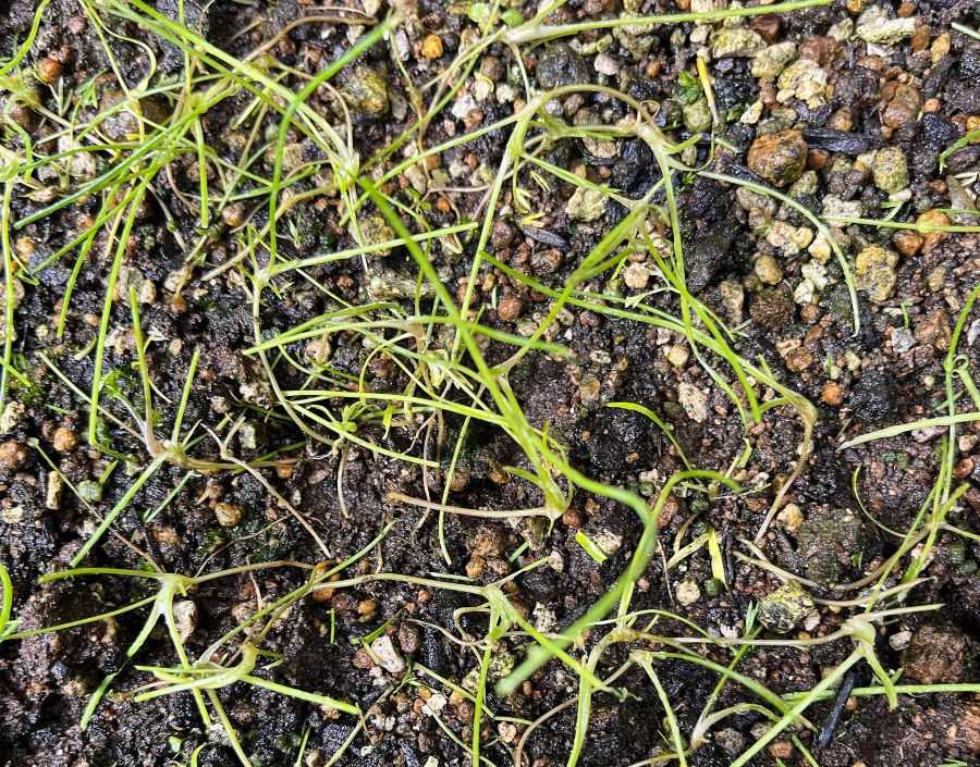 こぼれ種から芽を出していたディル。小さくて細い茎に柔らかな葉が茂っていたのですが・・・朝見たら、葉がない!虫に食べられてしまったのでしょうけれども、ここまで食べます⁉遠慮がなさすぎる。せっかく芽が出てたのに。ガッカリだ~。