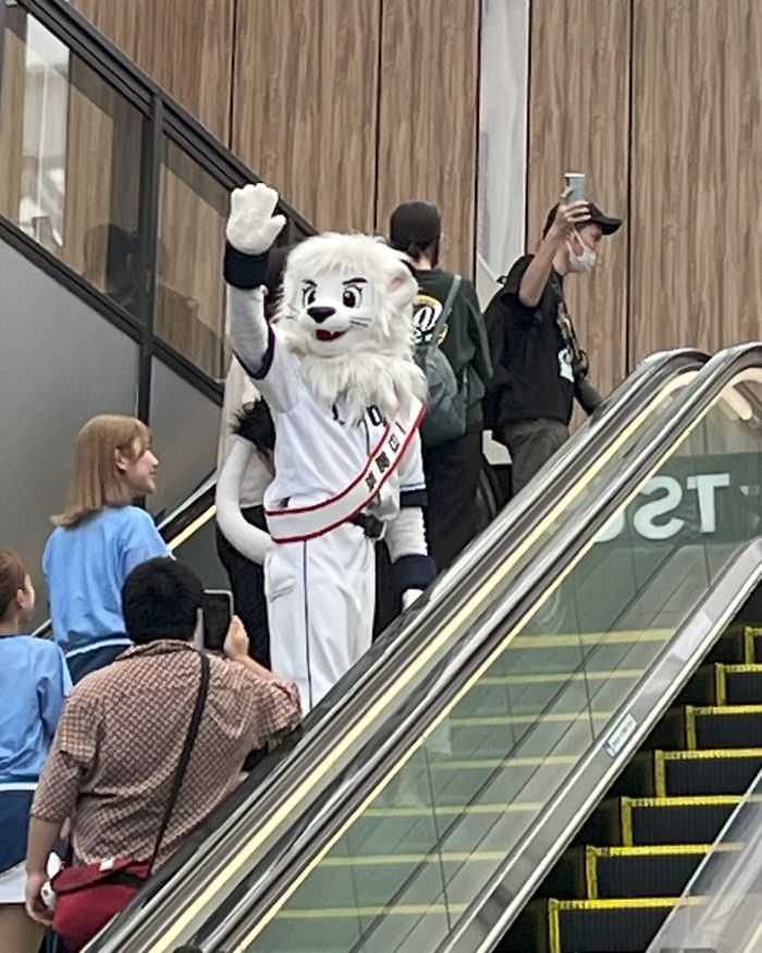 何かと用事が多くて、その分外出も増えるのですが、暑さ対策が大変。ただでさえ暑さに弱い私は、面倒だなと思いつつも日傘を使うようにしています。でも、折り畳み式の日傘は、頻繁に伸縮したり広げたり畳んだりで疲れるのか⁽?⁾、開閉が調子悪くなり、壊れてしまいました。まだ必要、だよね。仕方なく、日傘を買いに駅隣接のショッピングモールへ。・・・と何やら行列が。今日の一日館長がやってきたのです。レオ様、とても愛想がよろしくて☆思わず私も手を振っちゃった(≧▽≦)我が地元、所沢は西武の街。ナイターがある日は、ライオンズのユニフォームを着た人が駅にもいっぱい出現しています。街には何十年も前から、松崎しげるが歌うライオンズの応援歌が流れており、おそらく市民はあの歌をずっと刷り込まれてきていて、みんな歌える(と思う)。西武線の電車、ライオンズのラッピング電車が頻繁に走っており、市内の駅には選手の等身大パネルが設置されています。あ、余談ですが、その西武線の電車中吊りには、西武園ゆうえんちの広告が。所沢出身のオードリー春日さんが西武園ゆうえんちのプールをPRしています。(春日さんは所沢市観光大使です)