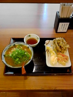 いつもの「丸亀製麺」です。 カレーうどん、イカと青さのかき揚げ、イカ天、ウインナー揚げです。 う~ん、毎度天ぷらに悩まされる…。