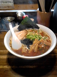 醤油ラーメンの大盛りです。松福はうましです。