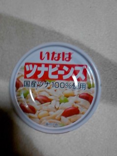 いなば製品です。昨日と同じ? いいえ、昨日はコーン、今日はビーンズです!!