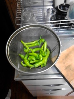 畑の一部からししとうが発見されました。母親の収穫です。