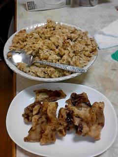 とり皮のから揚げを購入し、やっぱりチャーハンです。やっぱり、作りすぎ…。