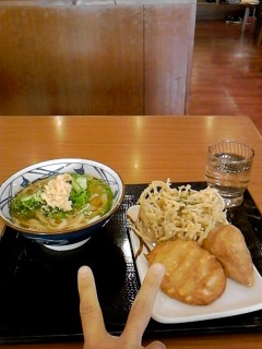 かけうどんとチーズ入りさつま揚げ、ゴボウのかき揚げに、いなりずし!よし、うまし!!